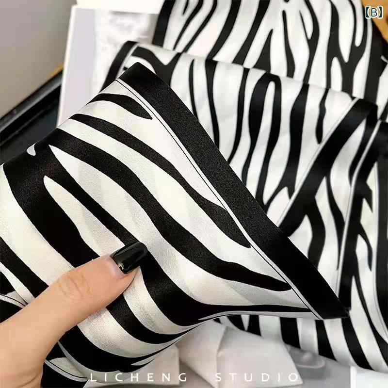 スカーフ おしゃれ レディース ストール シルク ロング 装飾 ヘッドバンド ブラウン 白 ゼブラ柄 ベルト