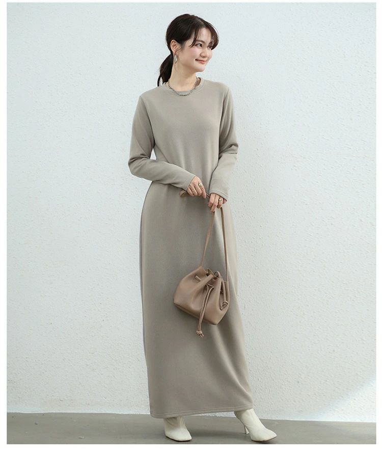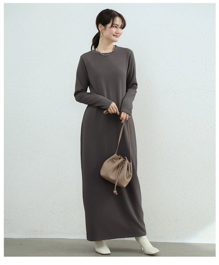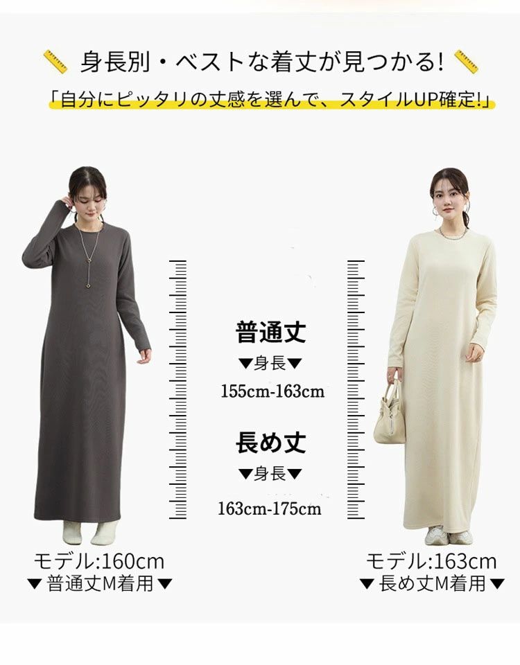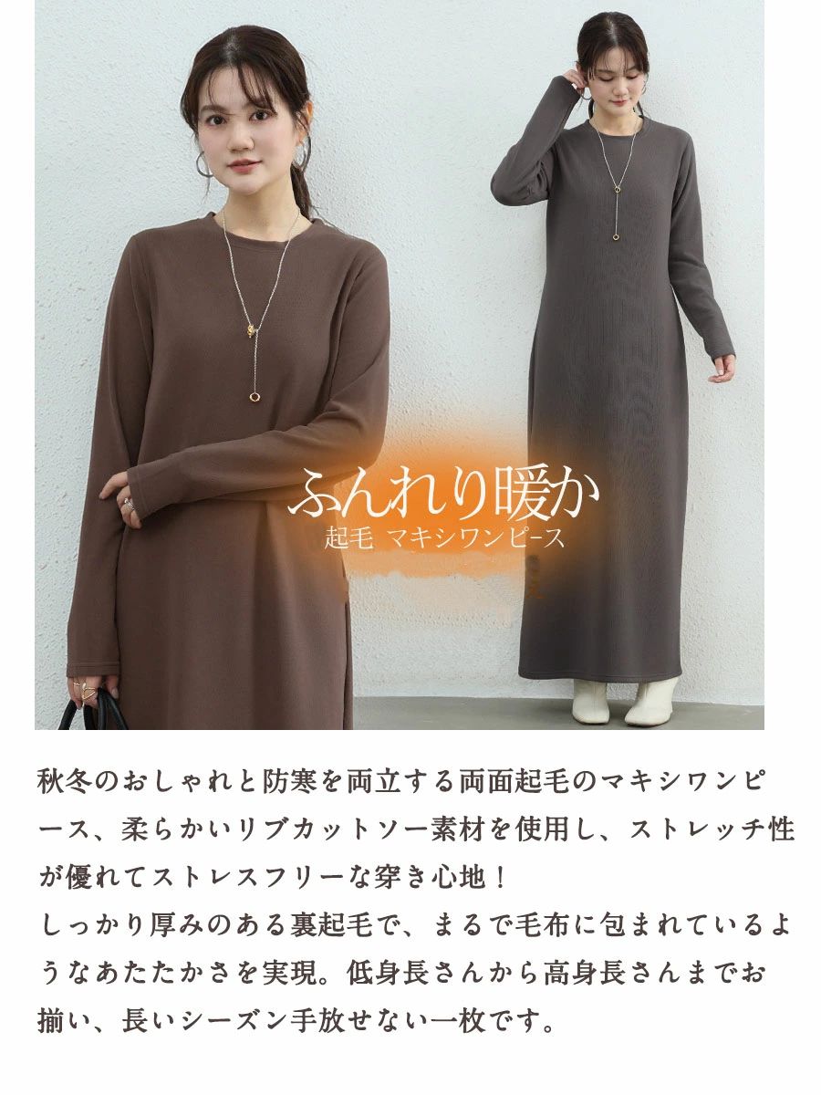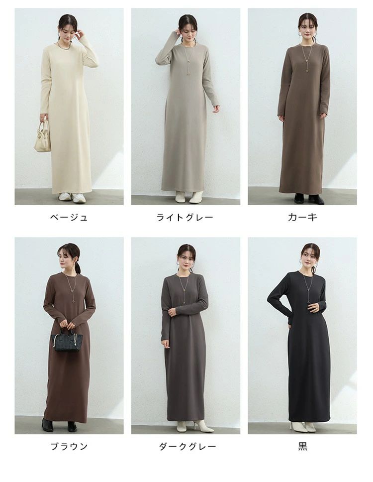 裏起毛 マキシワンピース 低身長 高身 レディースファッション 新登場! 黒 ベージュ ライトグレー ダークグレー ブラウン カーキ 普通丈M 普通丈L 長め丈M 長め丈L