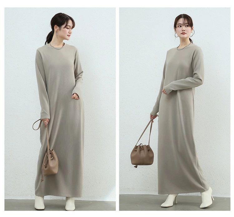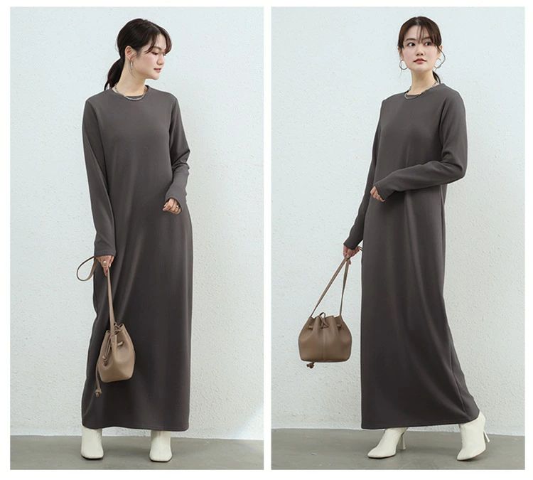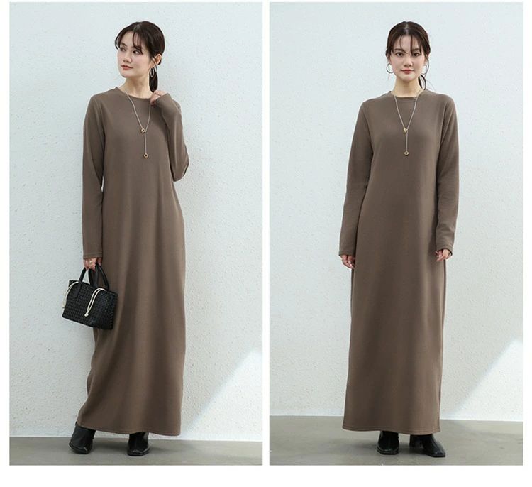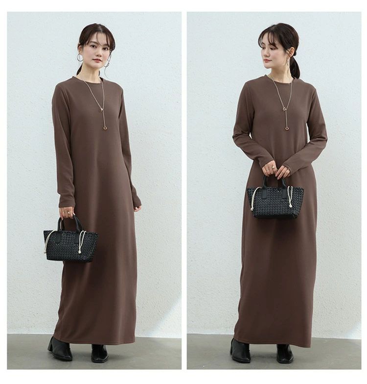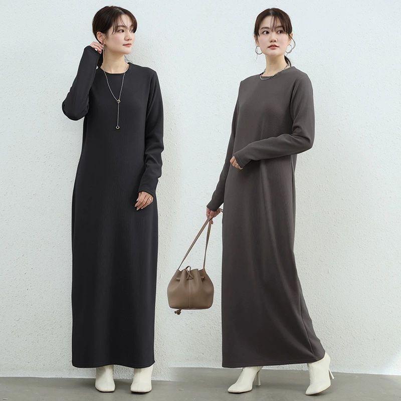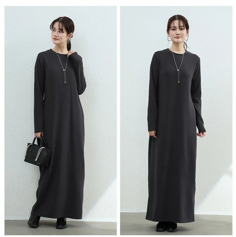 裏起毛 マキシワンピース 低身長 高身 レディースファッション 新登場! 黒 ベージュ ライトグレー ダークグレー ブラウン カーキ 普通丈M 普通丈L 長め丈M 長め丈L