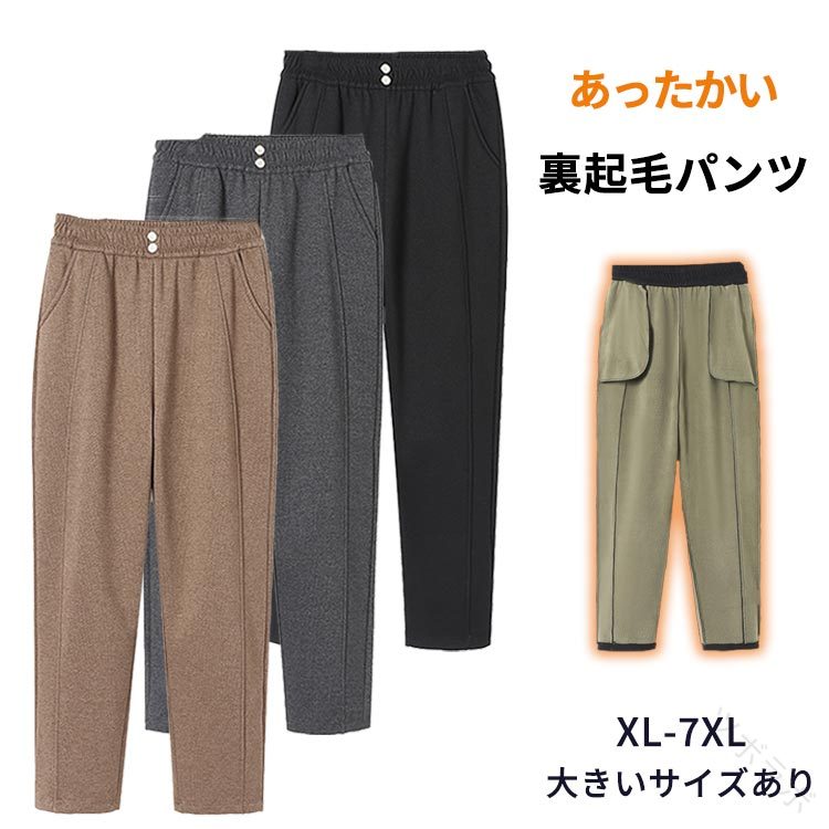 あったか シニア 裏起毛 パンツ 女性 レディースファッション 新登場! カーキ グレー ブラック XL 2XL 3XL 4XL 5XL 6XL 7XL
