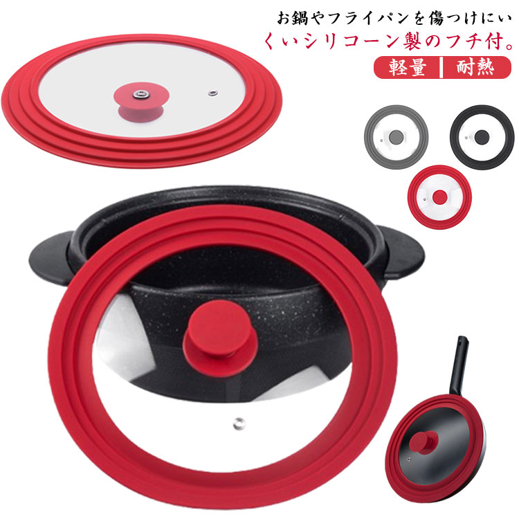 フタ ガラス蓋 フライパンカバー フラ レッド ブラック グレー 16・18・20cm用 18・20・22cm用 20・22・24cm用 22・24・26cm用 24・26・28cm用 26・28・30cm用 28・30・32cm用