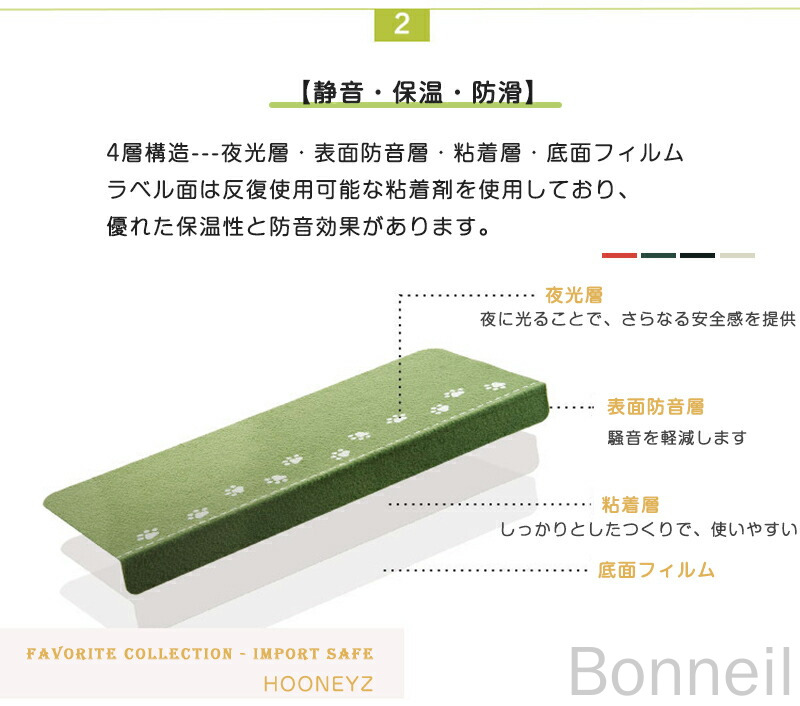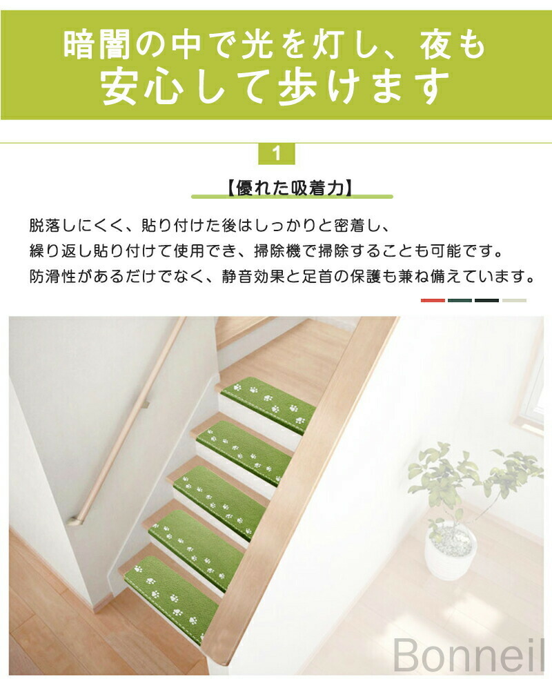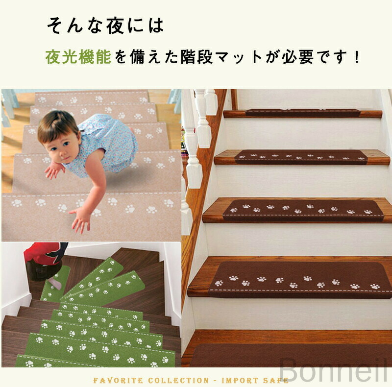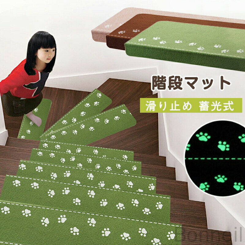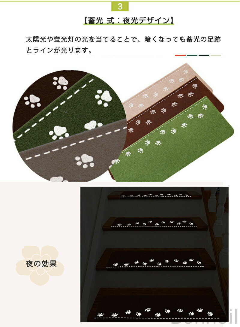 階段マット 吸着マット 滑り止め 蓄光 コーヒー色 ベージュ 5枚セット 10枚セット 15枚セット