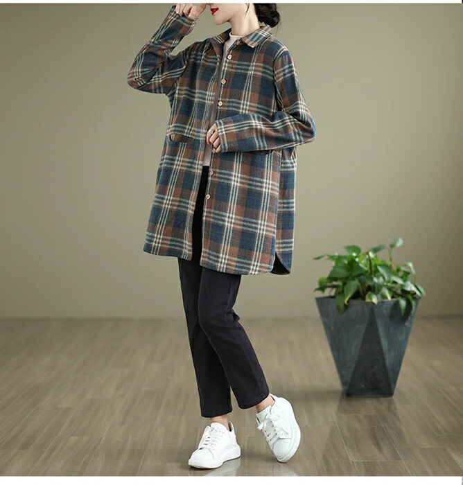 チュニック ロングシャツ チェック 秋 レディースファッション 超目玉商品 L XL 2XL