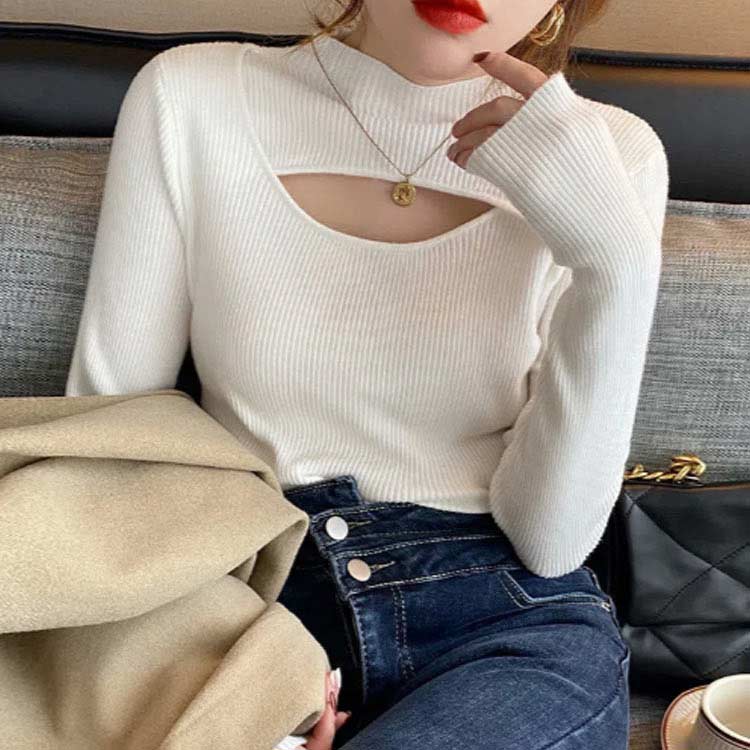 胸元 フロントオープンニットトップス トップス ニット セーター セーター 豊富な品揃え ブラック アイボリー ホワイト ブラウン グリーン オレンジ S M L XL 2XL 3XL