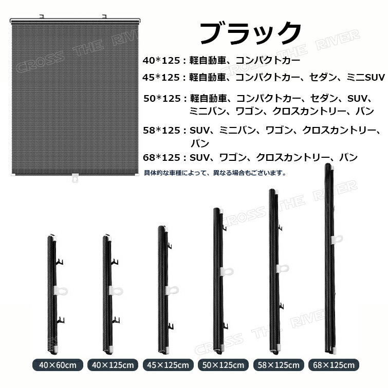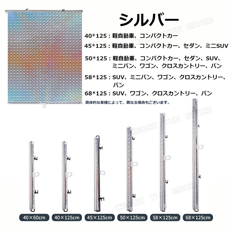 フロント サンシェード 車 ロール式 シルバー ブラック サイド40*60 40*125 45*125 50*125 58*125 68*125