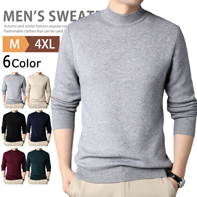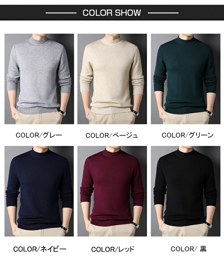 ニットメンズ長袖防寒セータータートルネ メンズファッション 豊富な品揃え M L XL 2XL 3XL 4XL 黒 グレー ベージュ ネイビー グリーン レッド