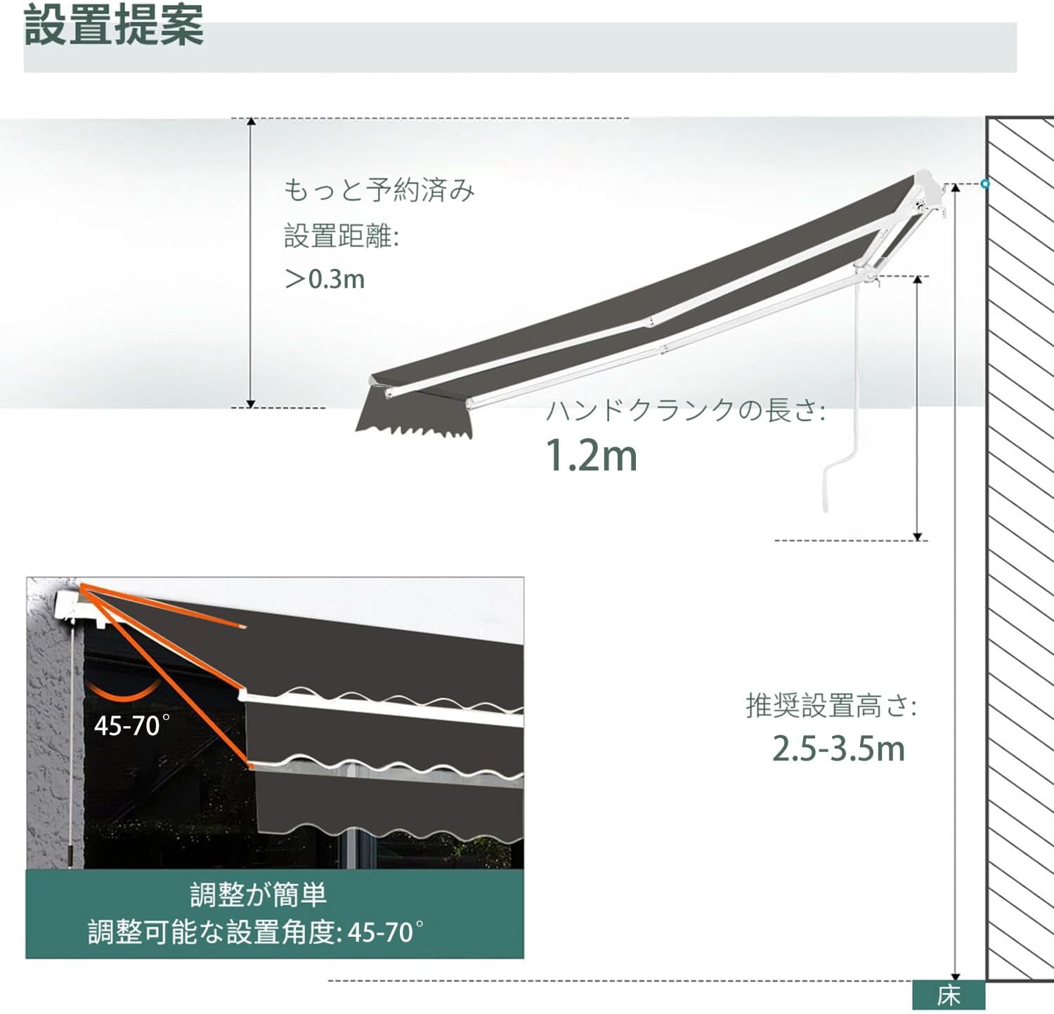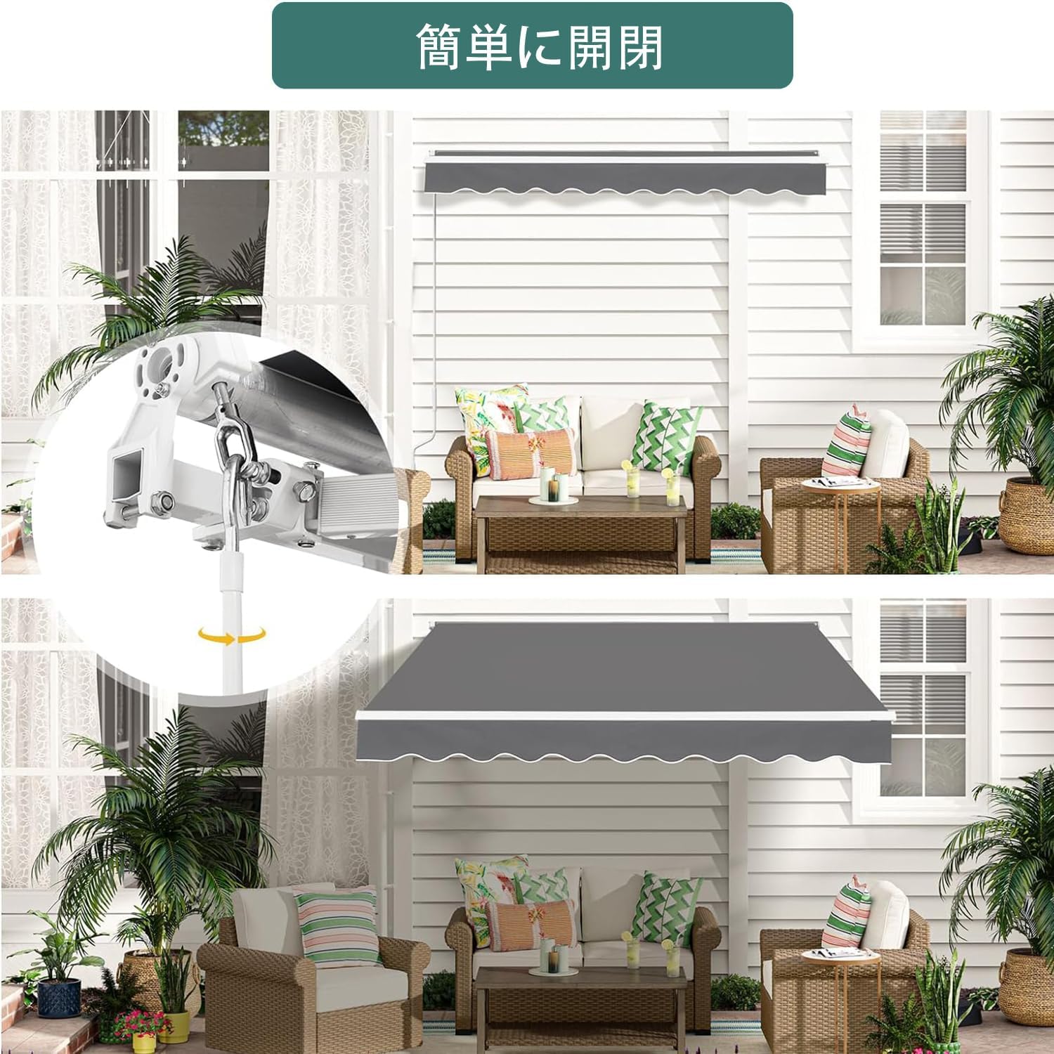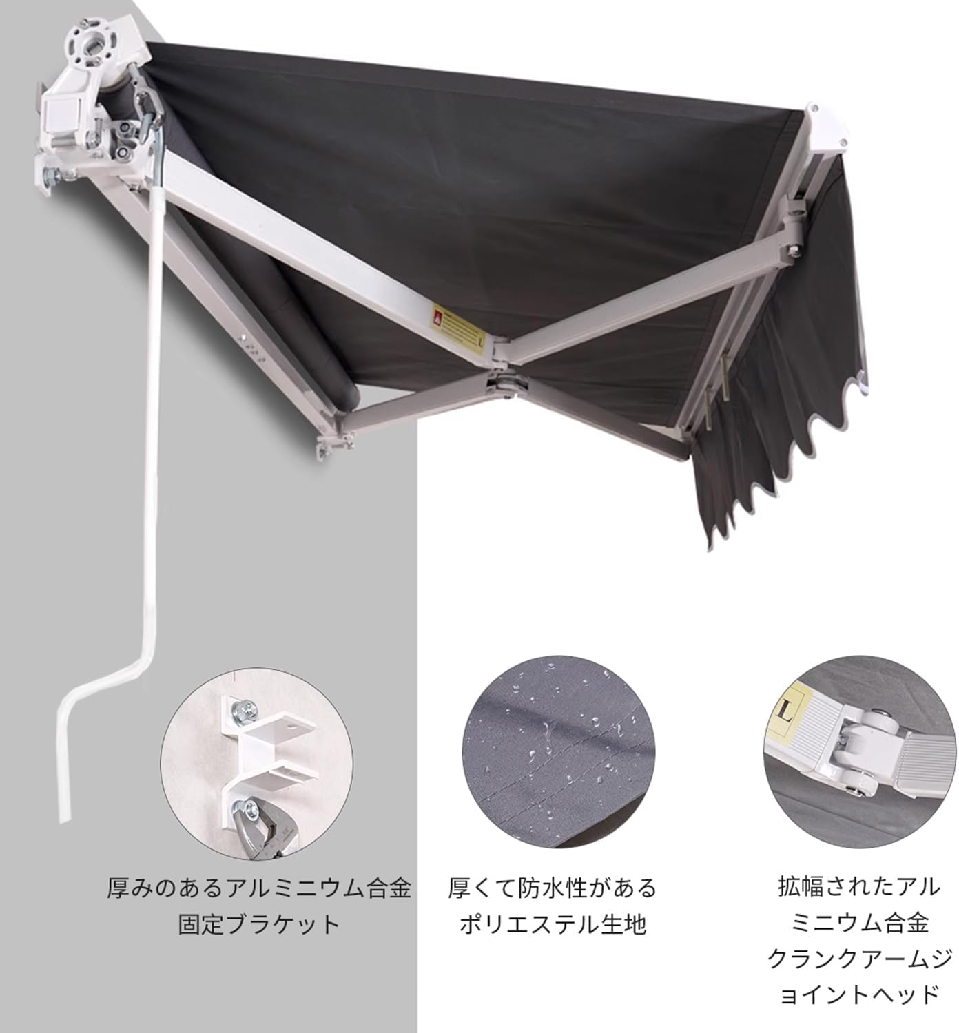 オーニングテント 手動 格納式 オーニ 2M 張出 1.5m 2.5M 張出 2m 3M 張出 2m 3M 張出 2.5m 3.5M 張出2.5m 3.5M 張出 3m 4M 張出 2.5m 4M 張出 3m グレー ベージュ ワインレッド ダークグリーン 青 灰白ストライプ 赤白ストライプ 青白ストライプ