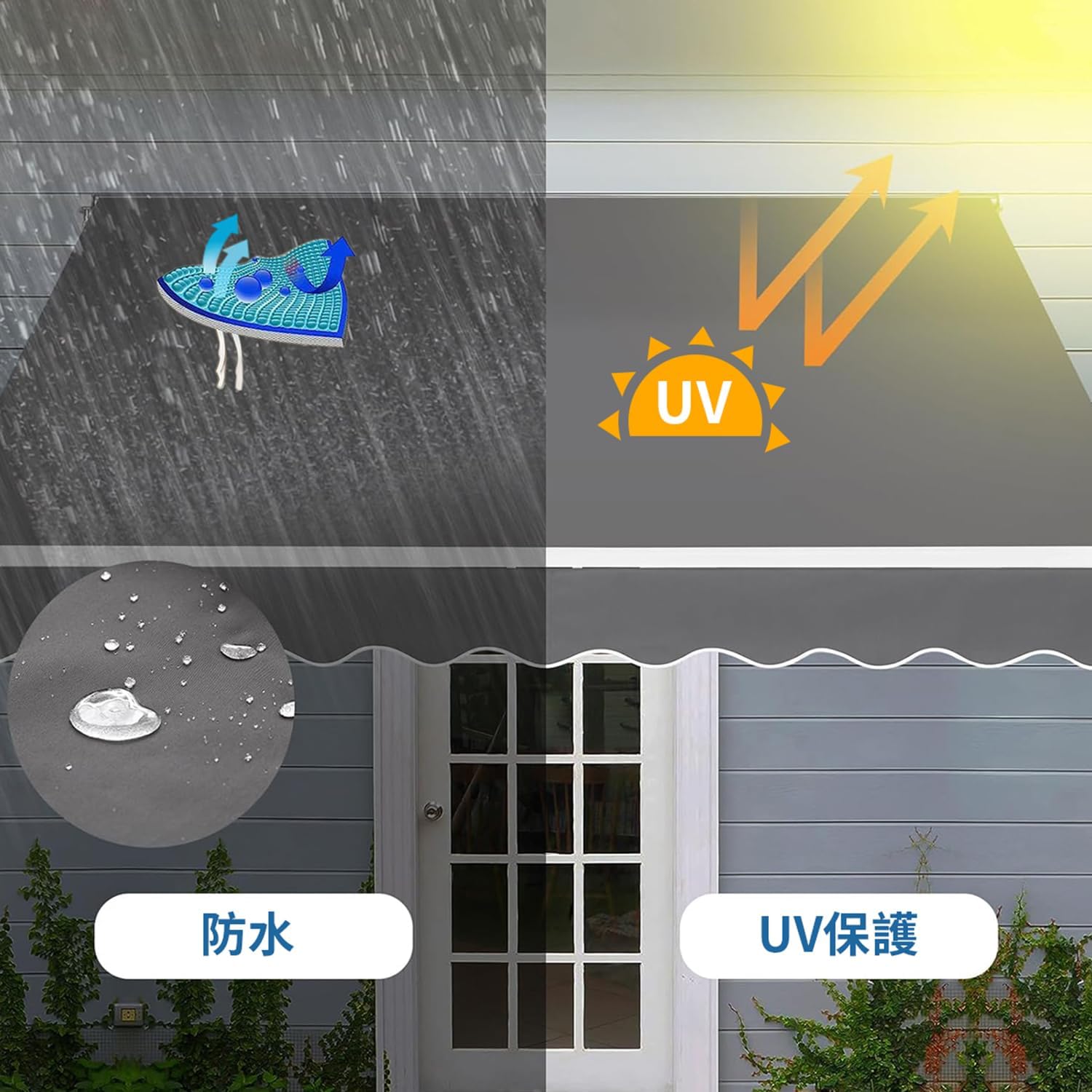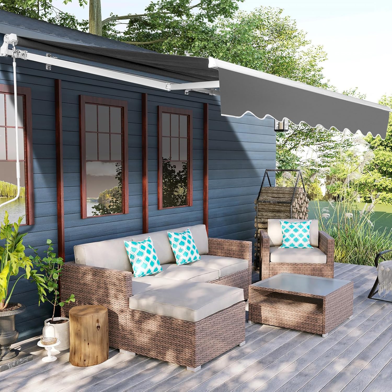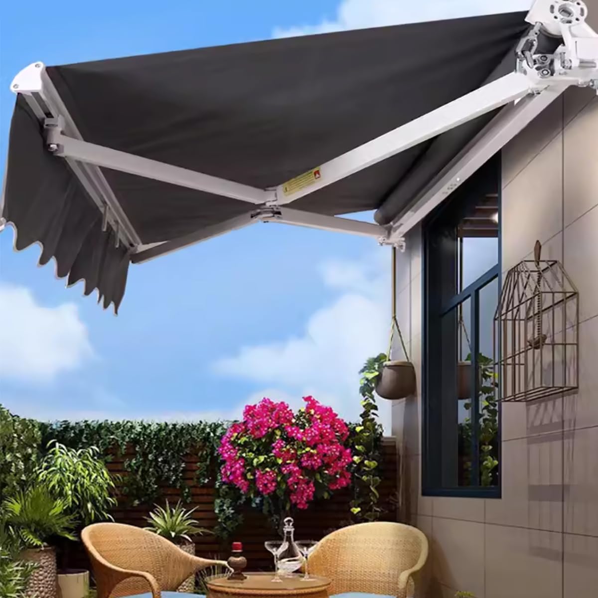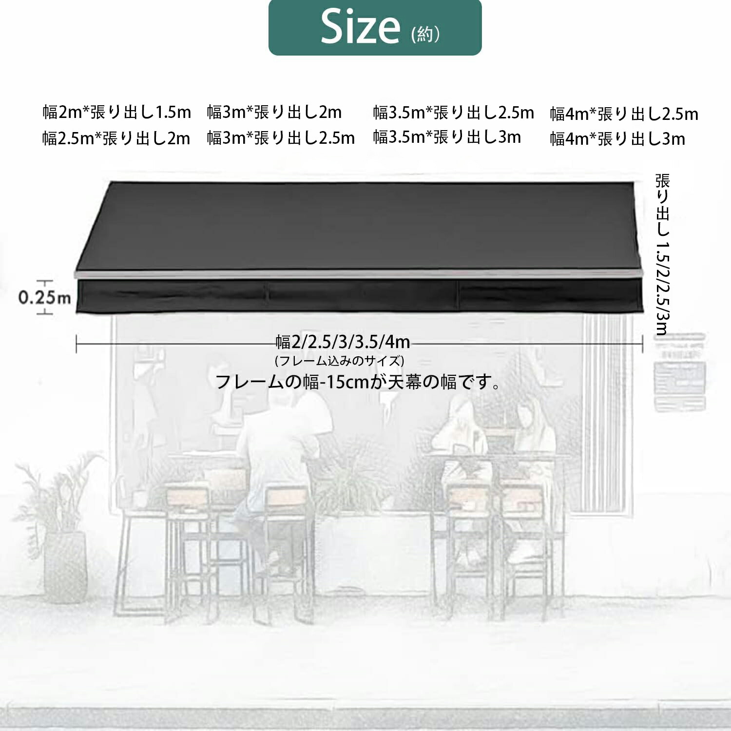 オーニングテント 手動 格納式 オーニ 2M 張出 1.5m 2.5M 張出 2m 3M 張出 2m 3M 張出 2.5m 3.5M 張出2.5m 3.5M 張出 3m 4M 張出 2.5m 4M 張出 3m グレー ベージュ ワインレッド ダークグリーン 青 灰白ストライプ 赤白ストライプ 青白ストライプ