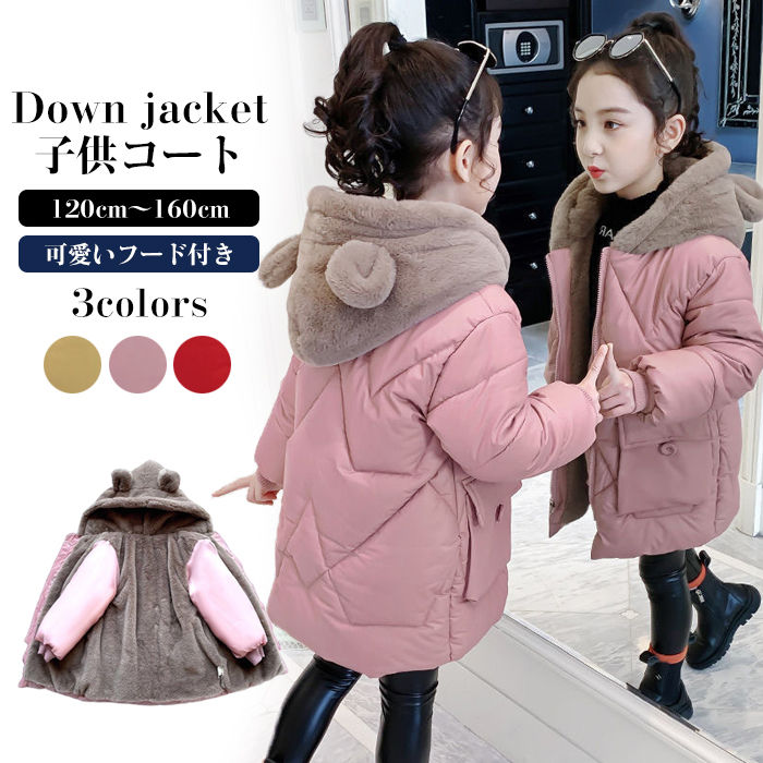 防寒コ 子ども服 厚手 可愛いフード付 キッズ コート ジャケット 早い者勝ち ピンク レッド イエロー 120cm 130cm 140cm 150cm 160cm