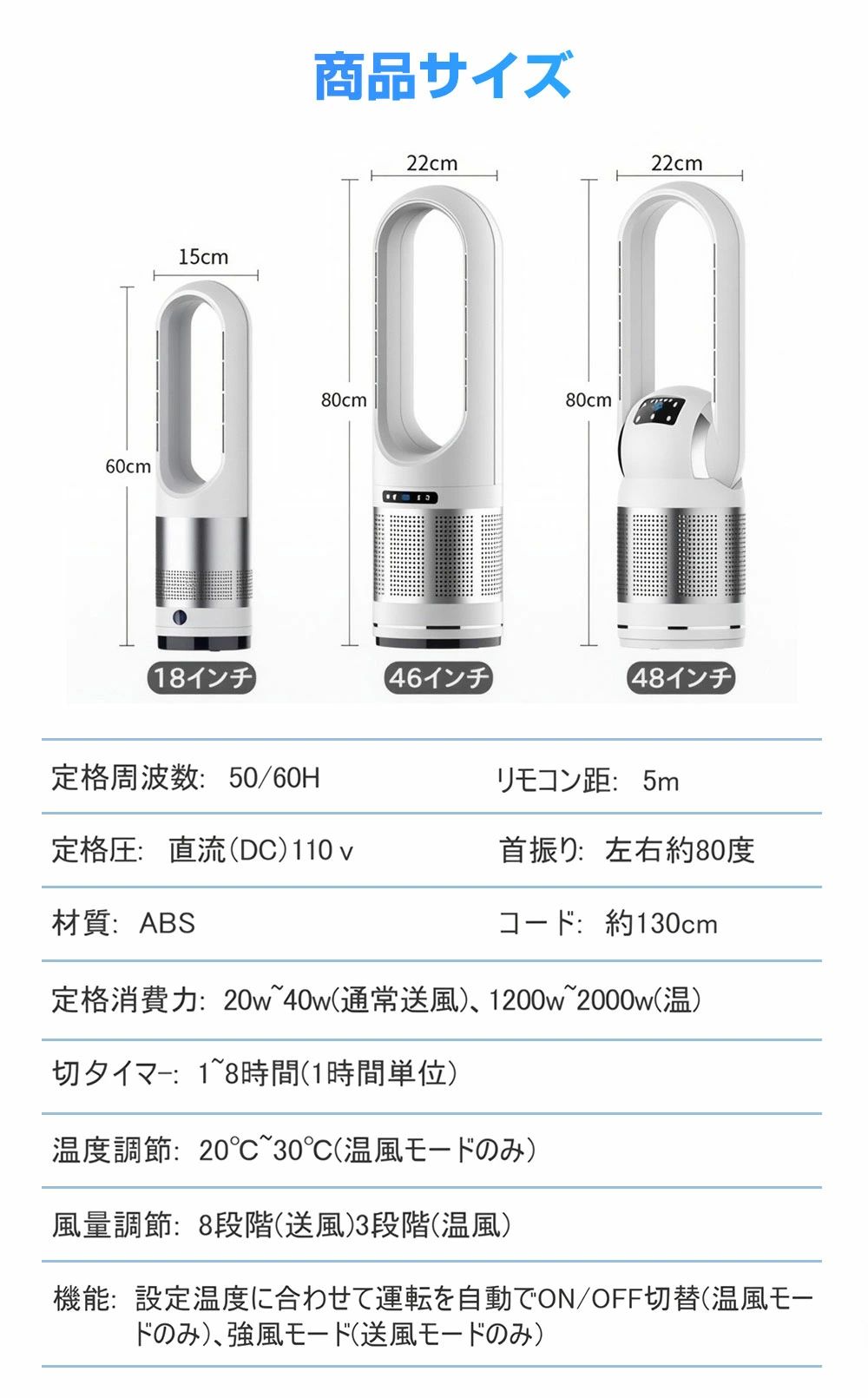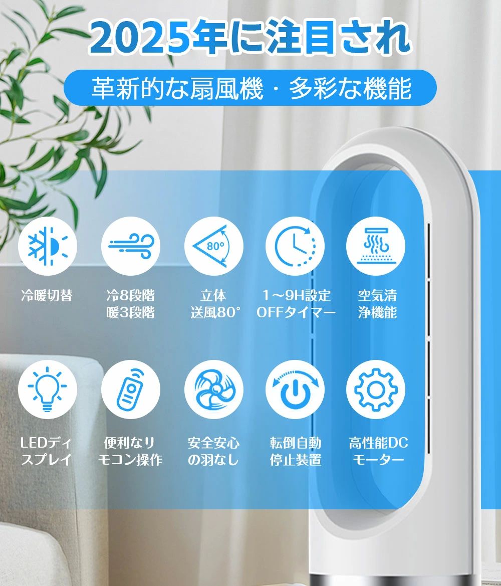 省スペ 足元 冷暖房 扇風機 風量調節 冷暖風切替 サーキュレーター スリム タワーファン 冷暖扇風機 羽なし扇風機 羽なし