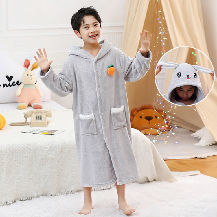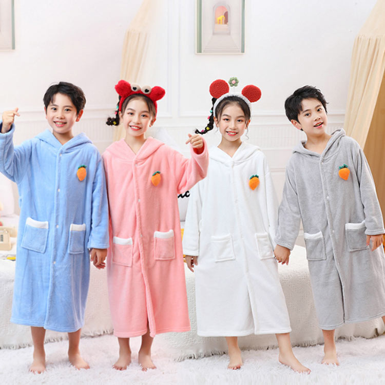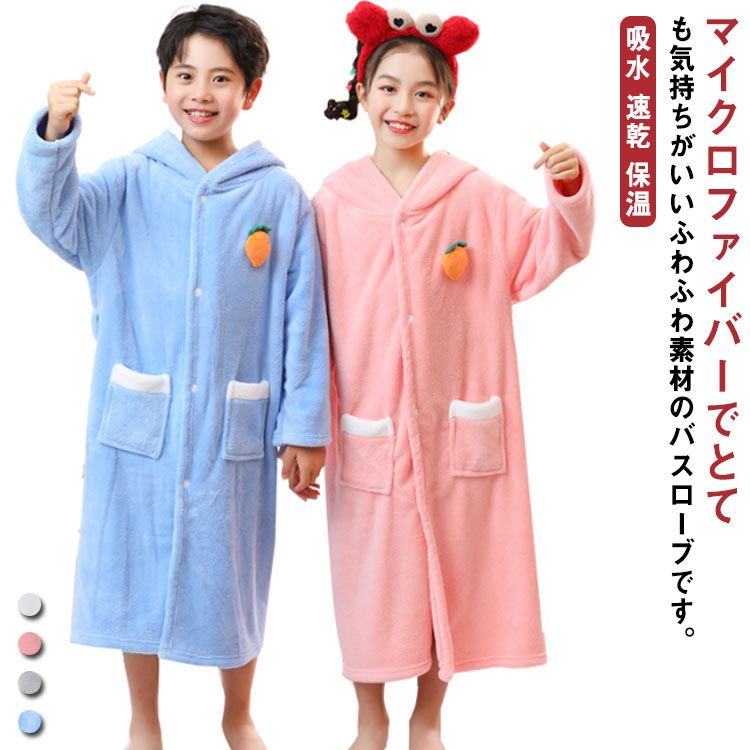 ガウン キッズ マイクロファイバー ロ キッズ 下着 パジャマ バスローブ 新登場! ホワイト ピンク グレー ブルー S M L