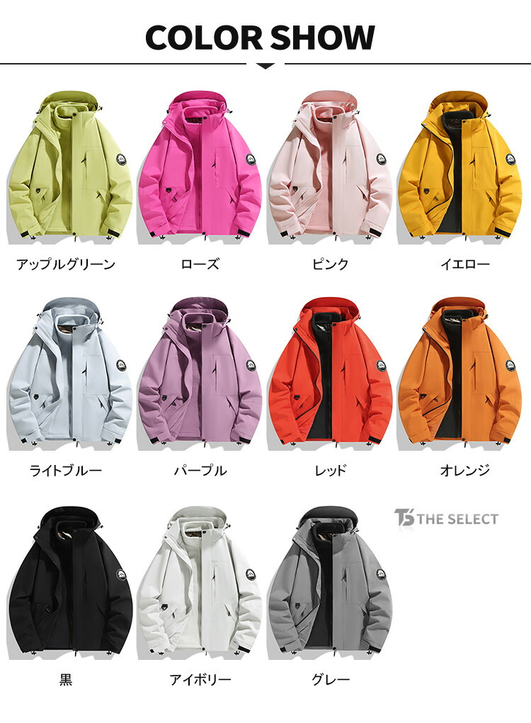 マウンテンパーカー メンズ レディース メンズファッション 早い者勝ち XS S M L XL 2XL 3XL アップルグリーン ローズ ピンク イエロー ライトブルー パープル レッド オレンジ 黒 アイボリー グレー