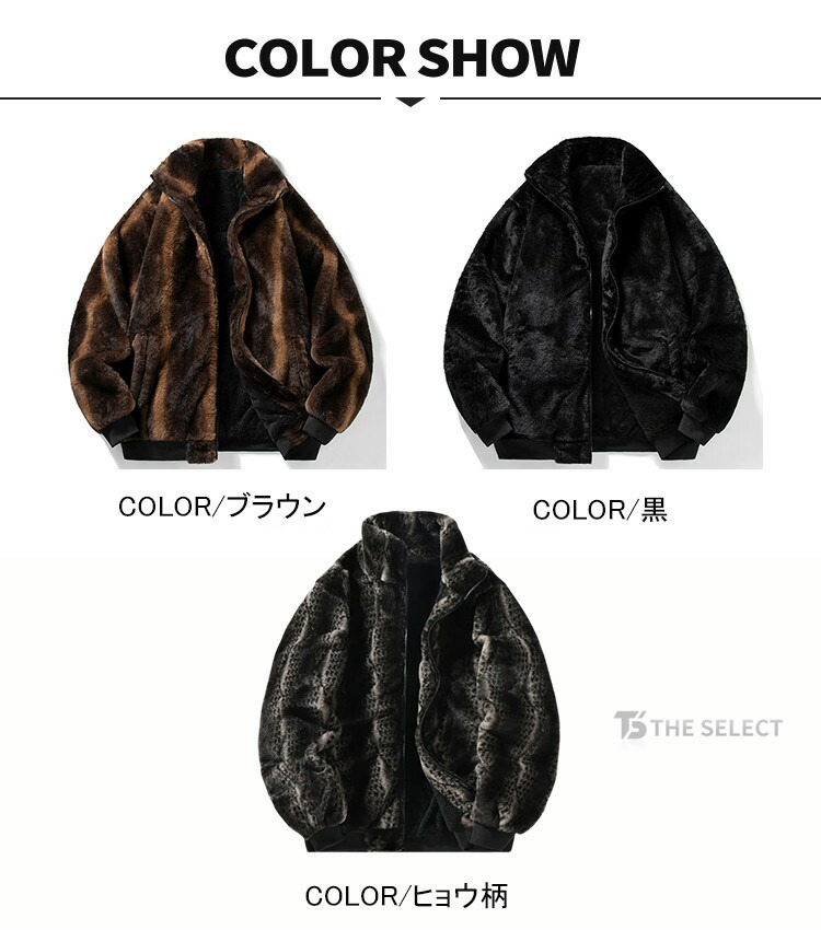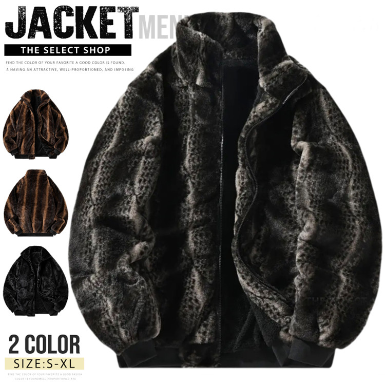 ファーコート メンズ おしゃれ 大きい コート ジャケット 新作 S M L XL 2XL ヒョウ柄 黒 ブラウン