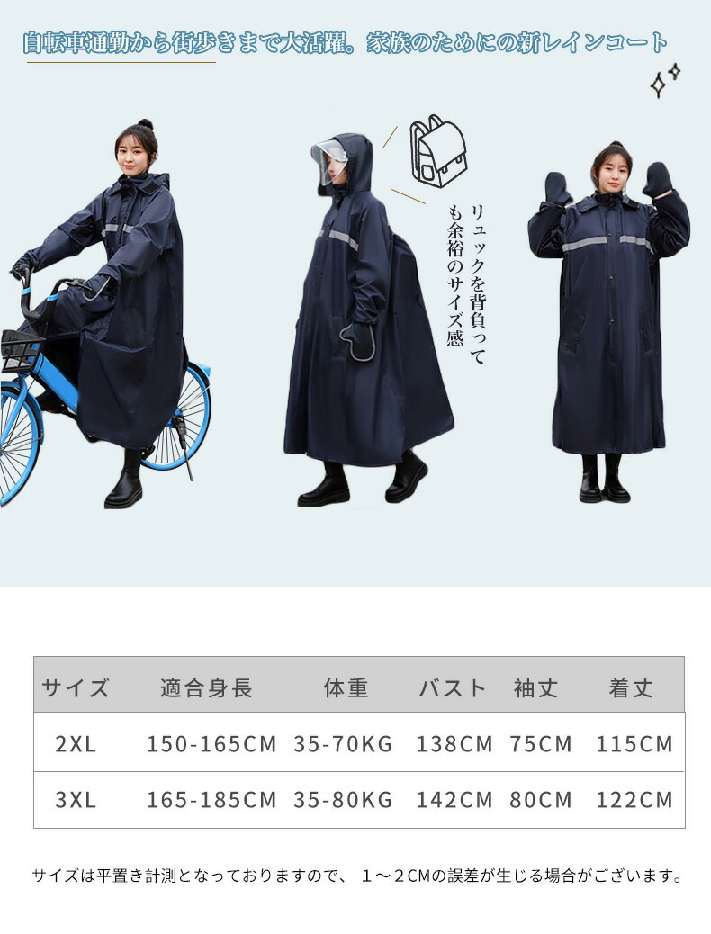 最新版レインコート 自転車 リュック レディースファッション 早い者勝ち 2XL( 適合身長:150-165cm) 3XL(適合身長:165-185cm)