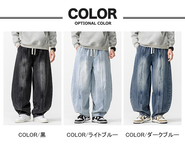 デニムパンツ ワイドパンツ バルーンパ メンズファッション 新登場! M L XL 2XL 3XL 4XL 5XL 黒 ライトブルー ダークブルー