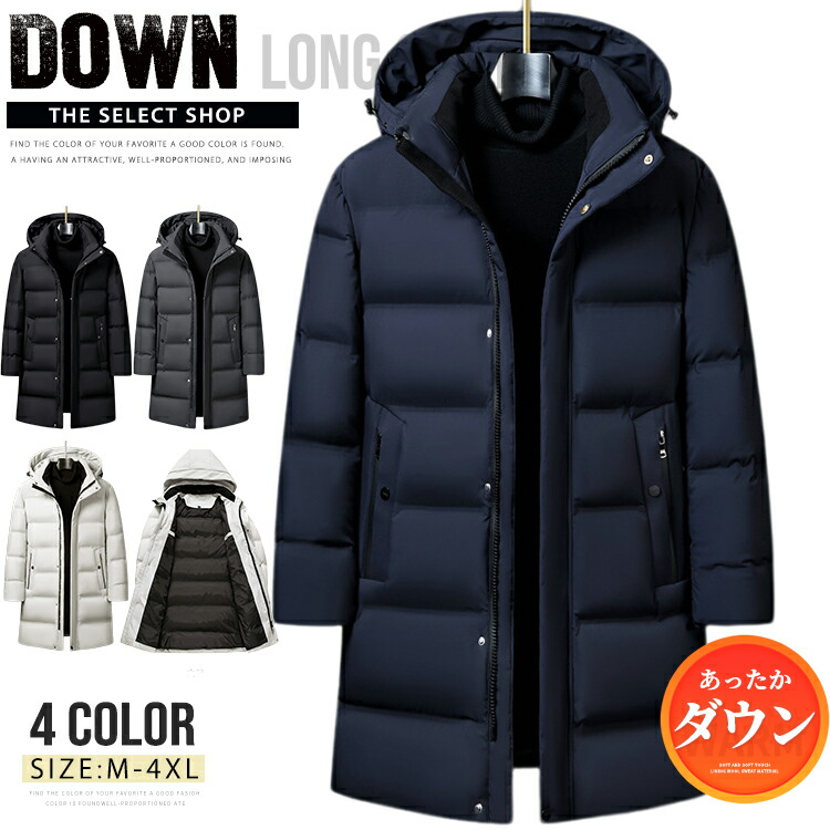 ダウンコート ベンチコート ロングコー メンズファッション 新作 M L XL 2XL 3XL 4XL ダークブルー 白 黒 グレー