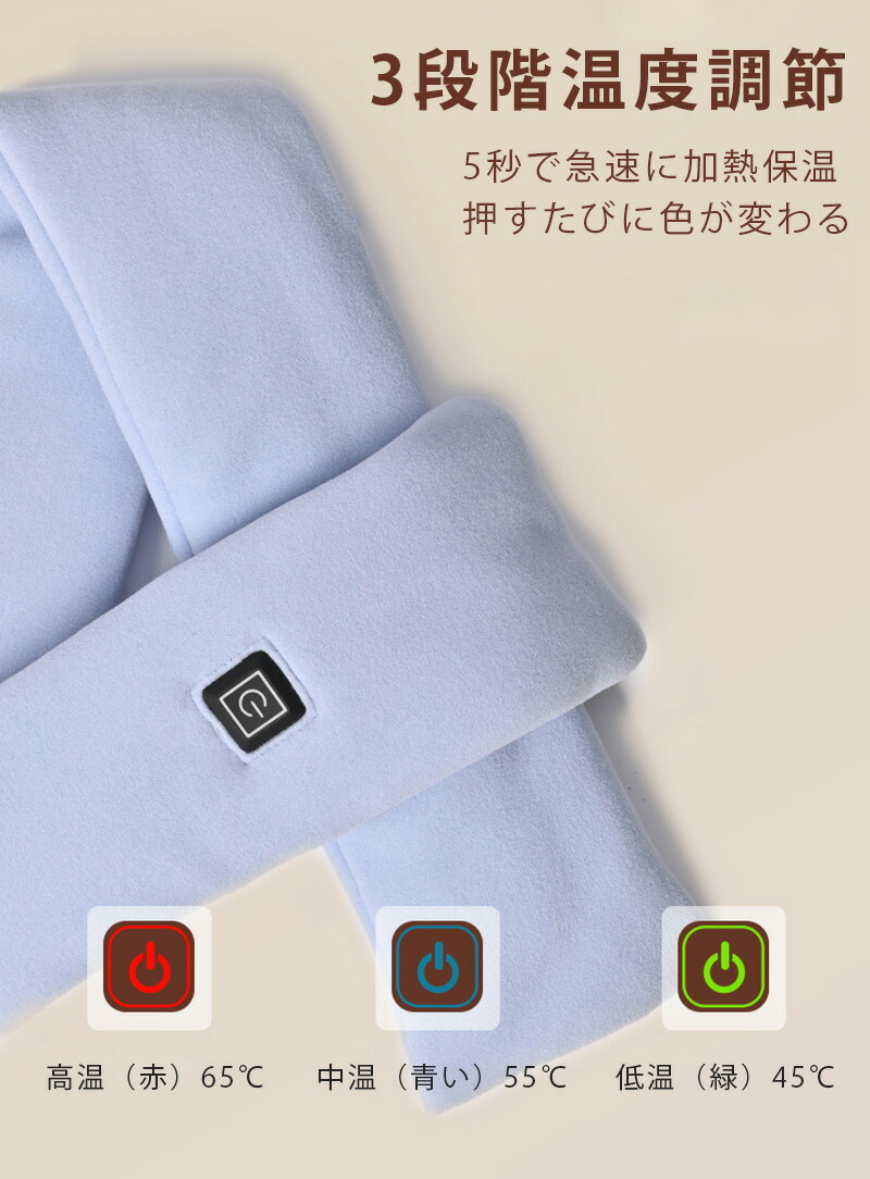 電熱マフラー USB 給電式 ヒートマ バッグ 小物 ブランド雑貨 続々登場 カーキ色 グレー ブラック ネイビー イェロー ピンク レッド ベージュ ブルー カーキ色 グレー ブラック ネイビー イェロー ピンク レッド ベージュ ブルー