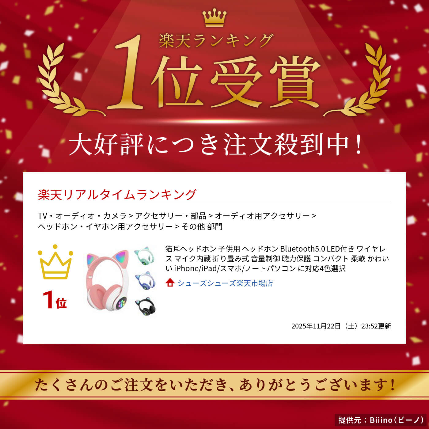 猫耳ヘッドホン 子供用 ヘッドホン B ピンク ブラック ブルー グリーン パープル