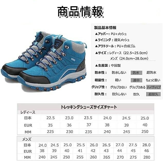 トレッキングシューズ レディース 登山 レディース靴 スニーカー 人気 ブルー(男女兼用) グレー(男) パープル(女) バラレット(女) 22.5 23 23.5 24 24.5 25 25.5 26 26.5 27 27.5 28