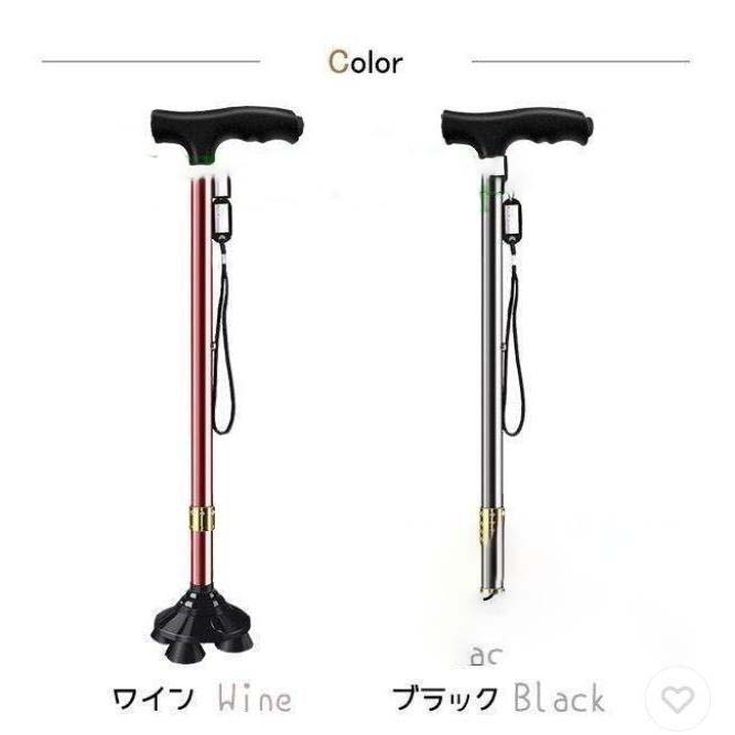 杖 自立式 男性 女性 ステッキ 4点 ブラック ワイン