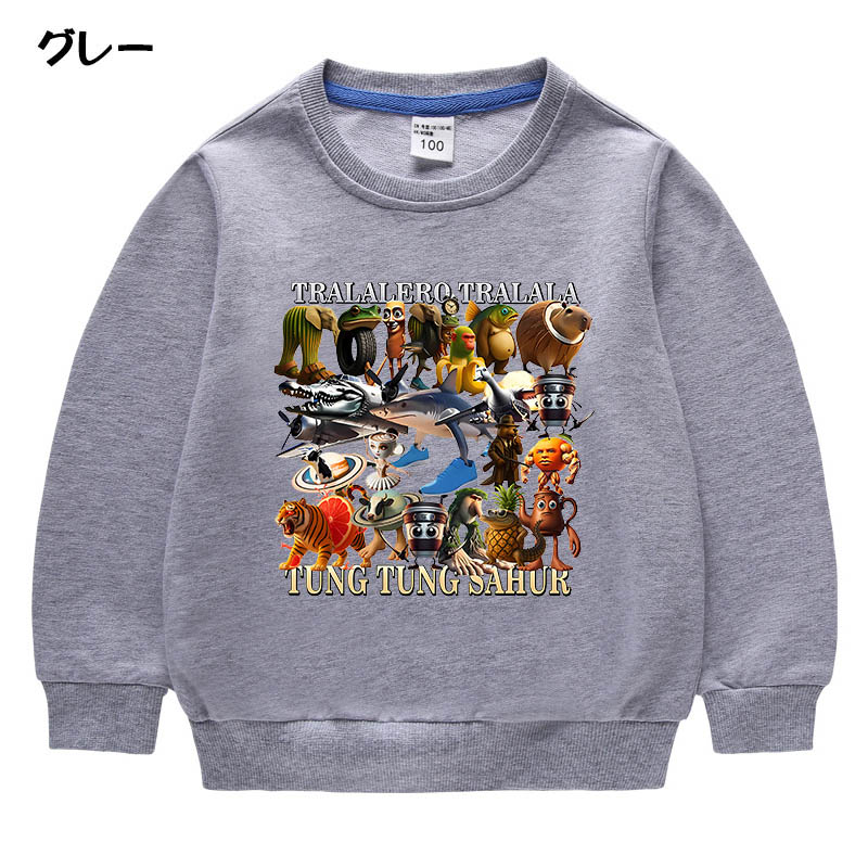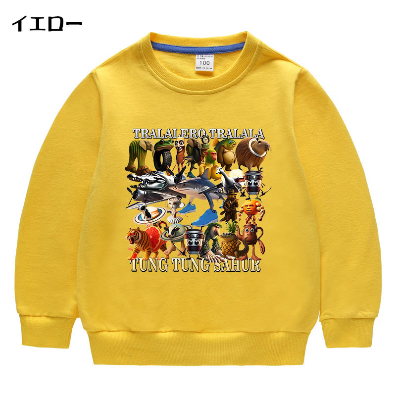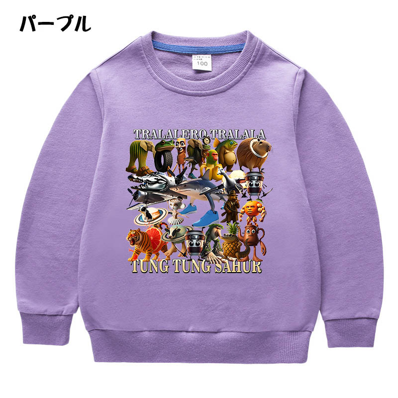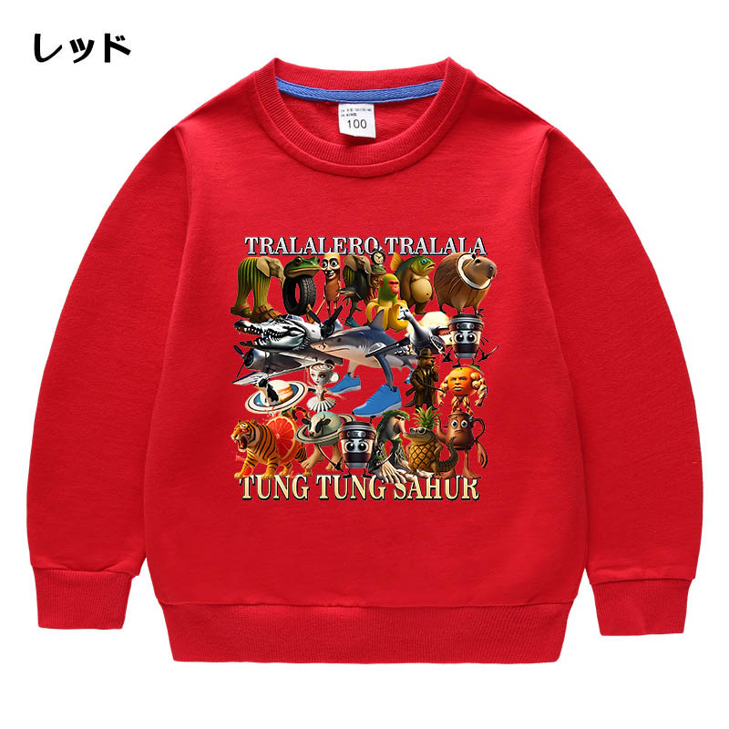 トゥントゥントゥンサフール イタリアンブレイン ロット 子供服 トレーナー キッズ 子供 春秋服 綿100% Tung Sahur 長袖 パーカー 可愛い 柔らかい 丸 スウェット