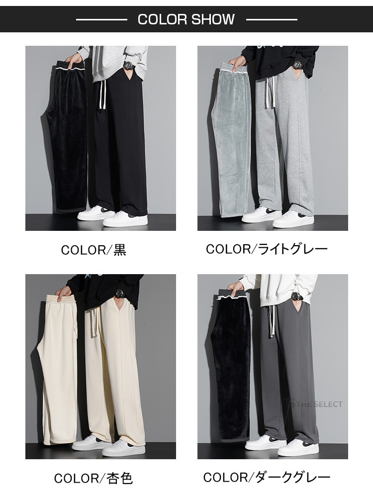 ワイドパンツ メンズ 裏起毛 ロングパ ズボン パンツ 続々登場 M L XL 2XL 3XL 4XL 5XL 黒 ライトグレー 杏色 ダークグレー