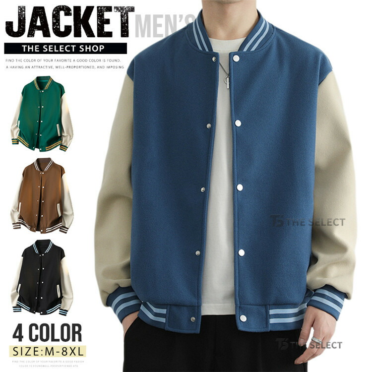スタジャン メンズ メルトン ブルゾン メンズファッション 続々入荷中 M L XL 2XL 3XL 4XL 5XL 6XL 7XL 8XL 黒 ブラウン ブルー グリーン