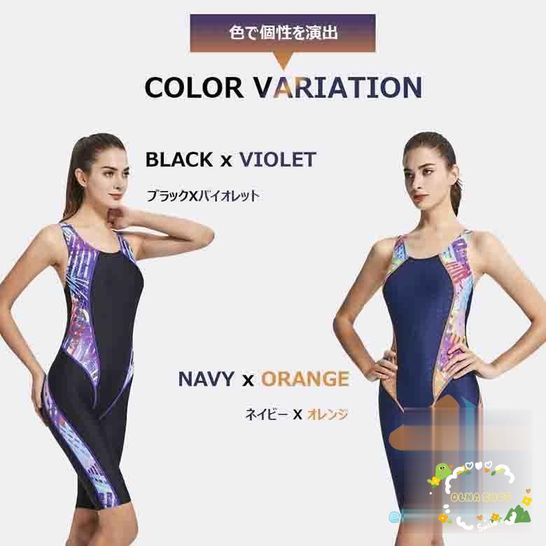 競泳水着 レディース パッド付き フィ レディースファッション 新作 ブラックxパープル ネイビーxオレンジ) M L XL 2XL 3XL 4XL