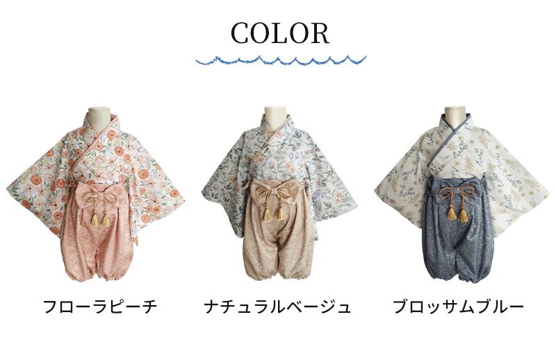 ベビー袴 2ピース セパレート 着物 ベビー ベビー服 ファッション 上下セット セットアップ 続々入荷中 ブロッサムブルー ナチュラルベージュ フローラピーチ 70cm 80cm 90cm
