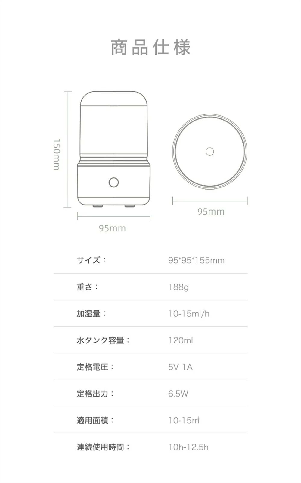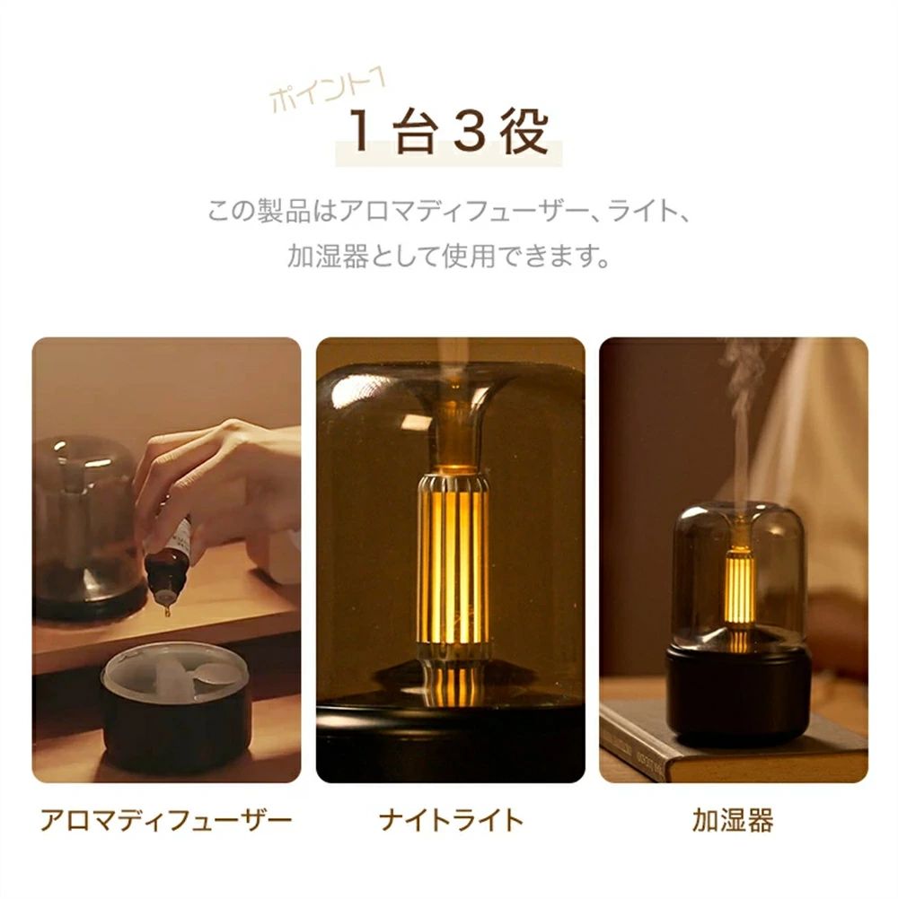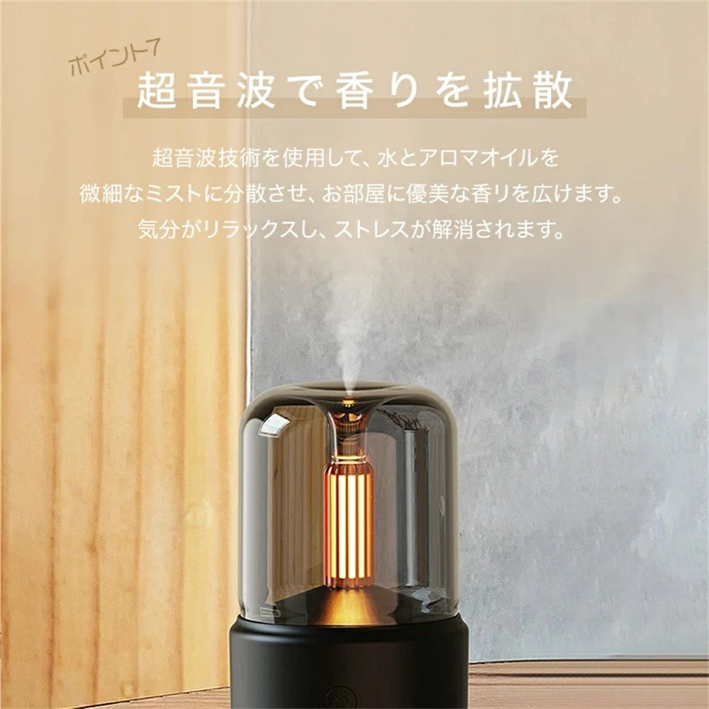 アロマディフュ一ザー 超音波 加湿器 ホワイト ブラック