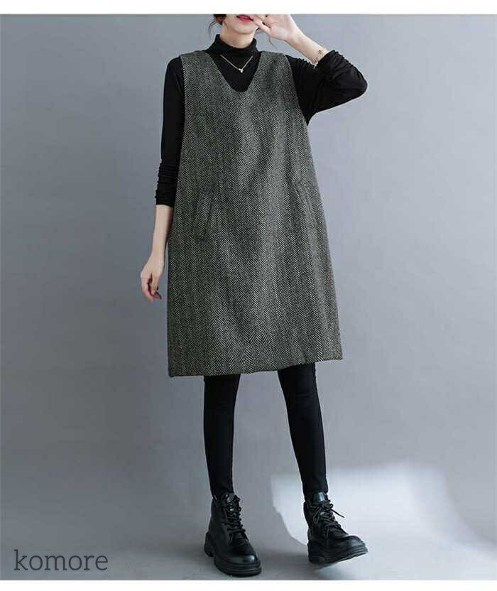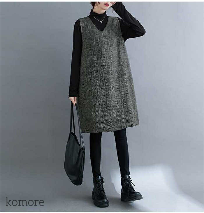 ノースリーブワンピース Vネック レデ M L XL XXL XXXL