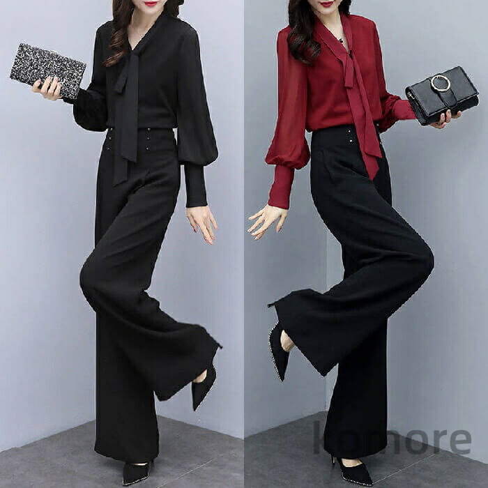 パンツスーツ セットアップ レディース スーツ セットアップ パンツスーツ 通販 黒 レッド M L XL 2XL 3XL