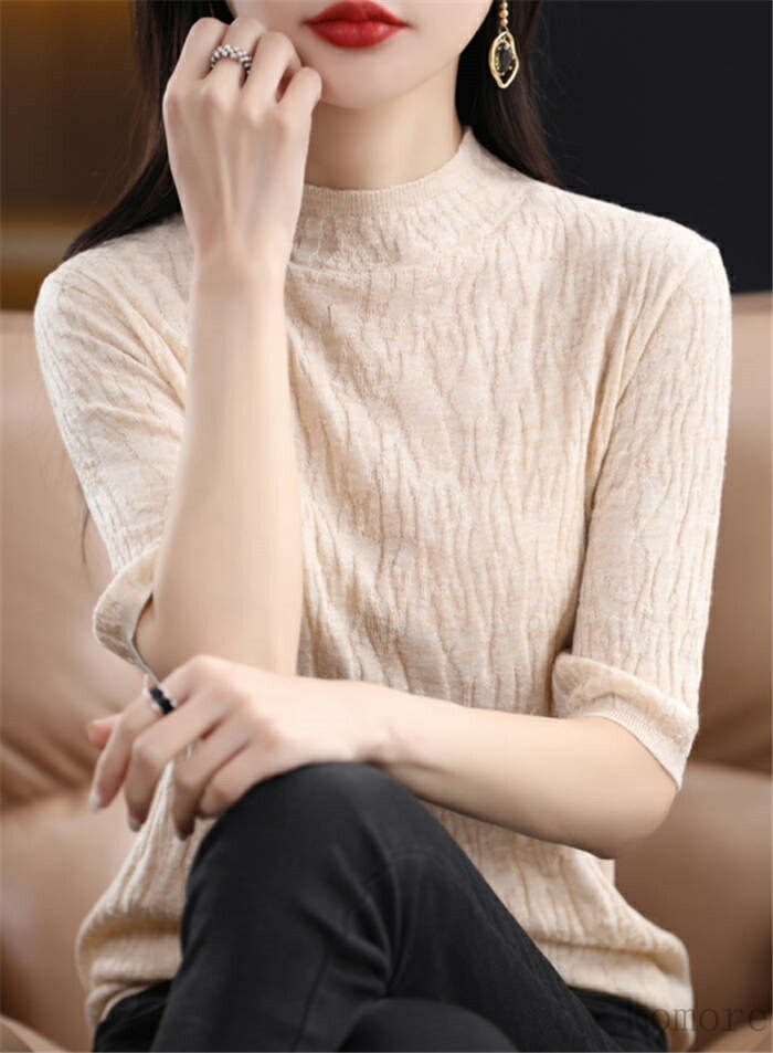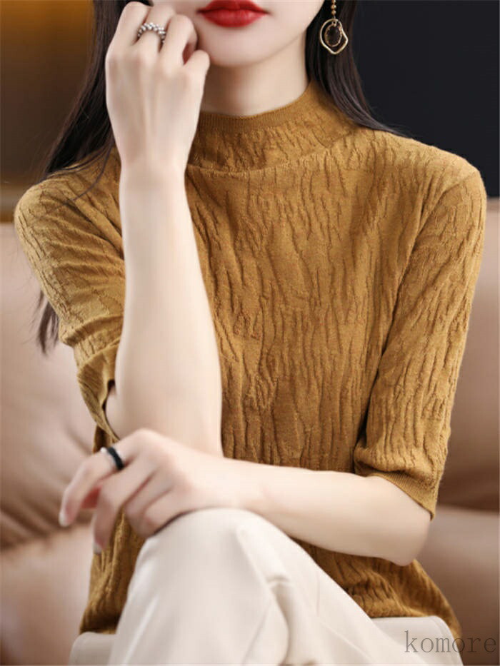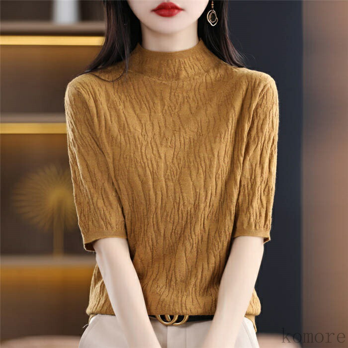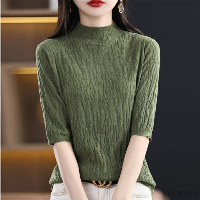 セーター 秋 レディース 5分袖 フォ レディースファッション 早い者勝ち ベージュ ダークグレー コーヒー 黒 ラクダ金色 緑 白 紺色 パープル S M L XL XXL