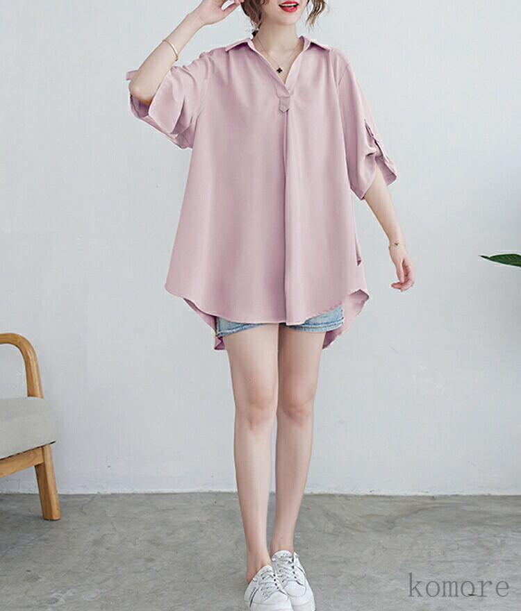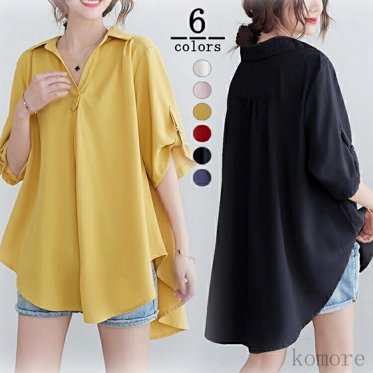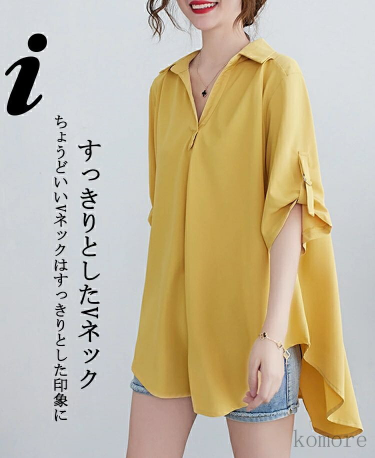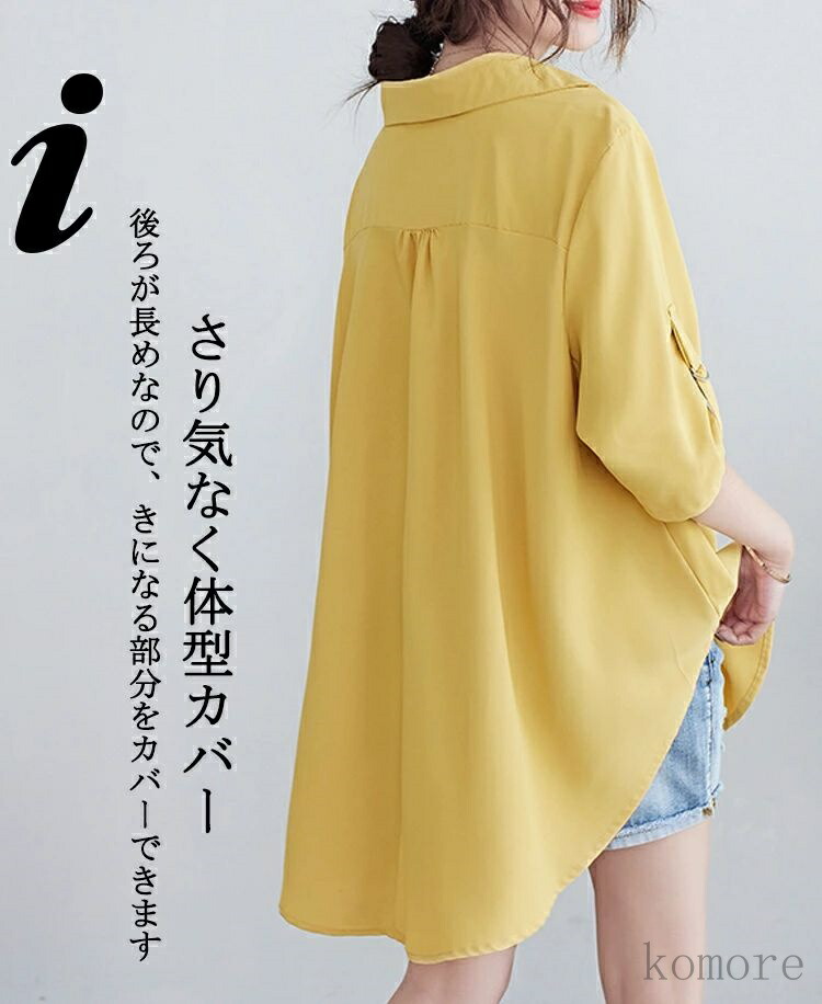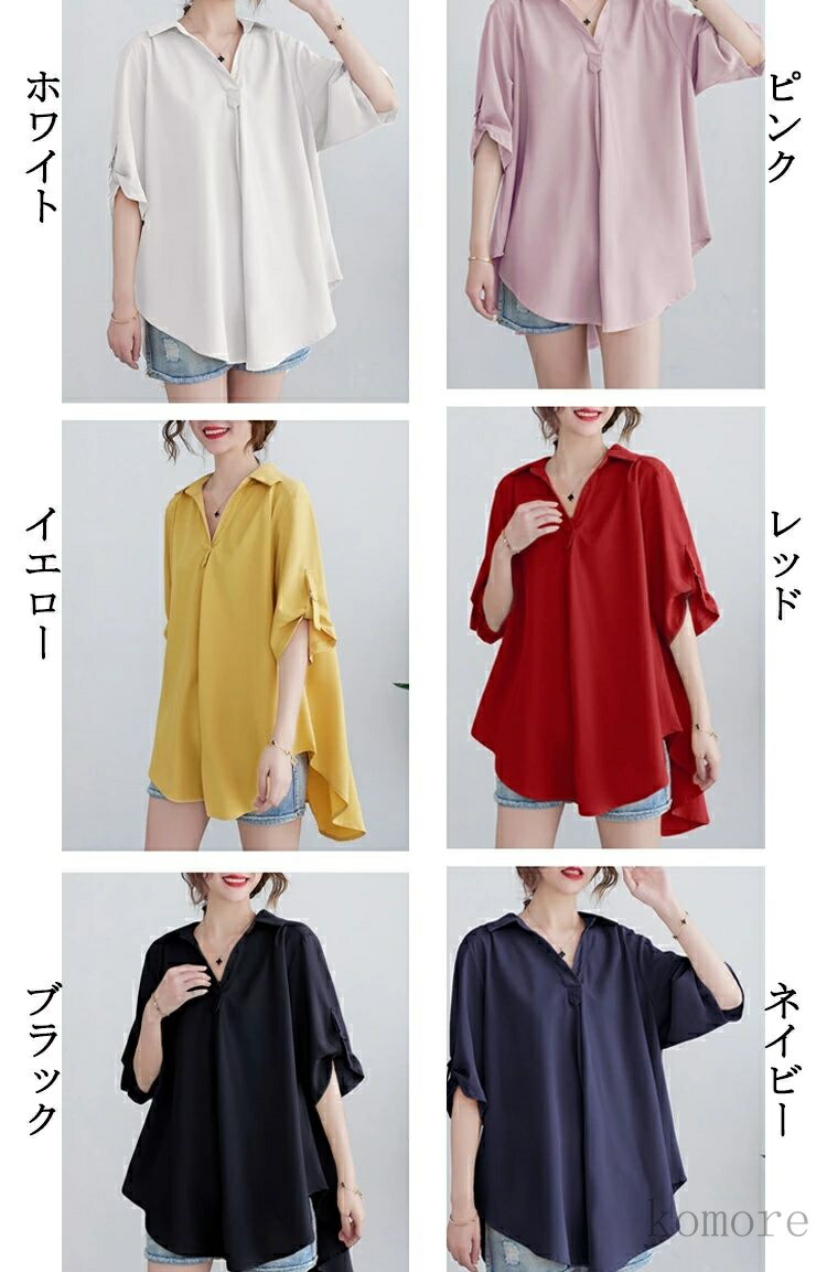シャツ レディース 春夏 体型カバー トップス シャツ ブラウス 続々登場 ホワイト ブラック イエロー ピンク レッド ネイビー