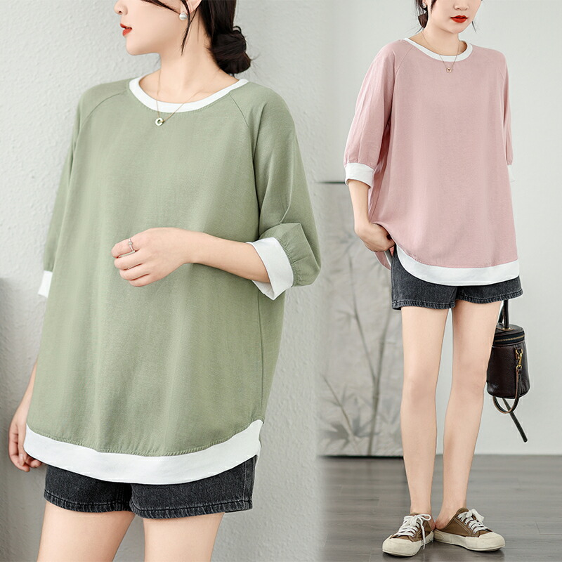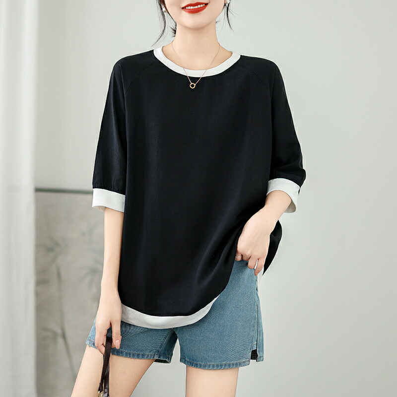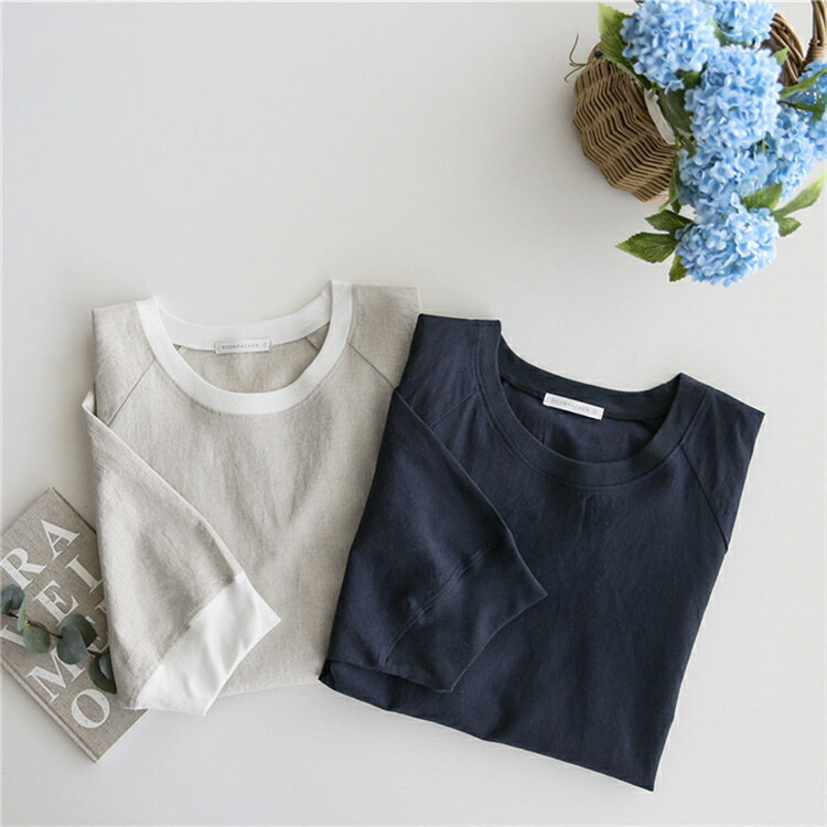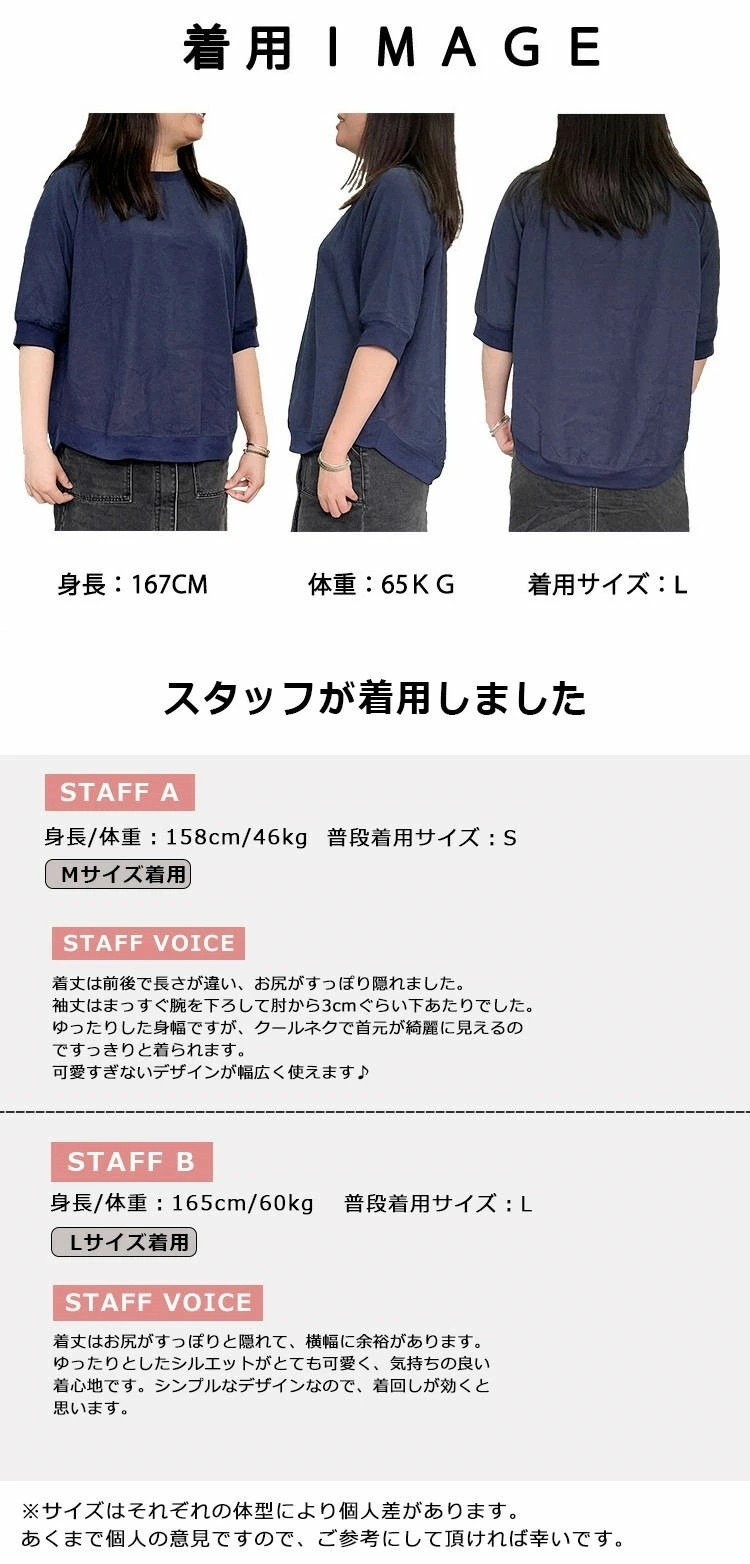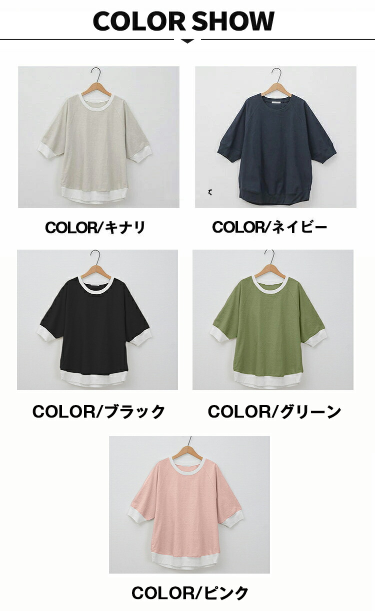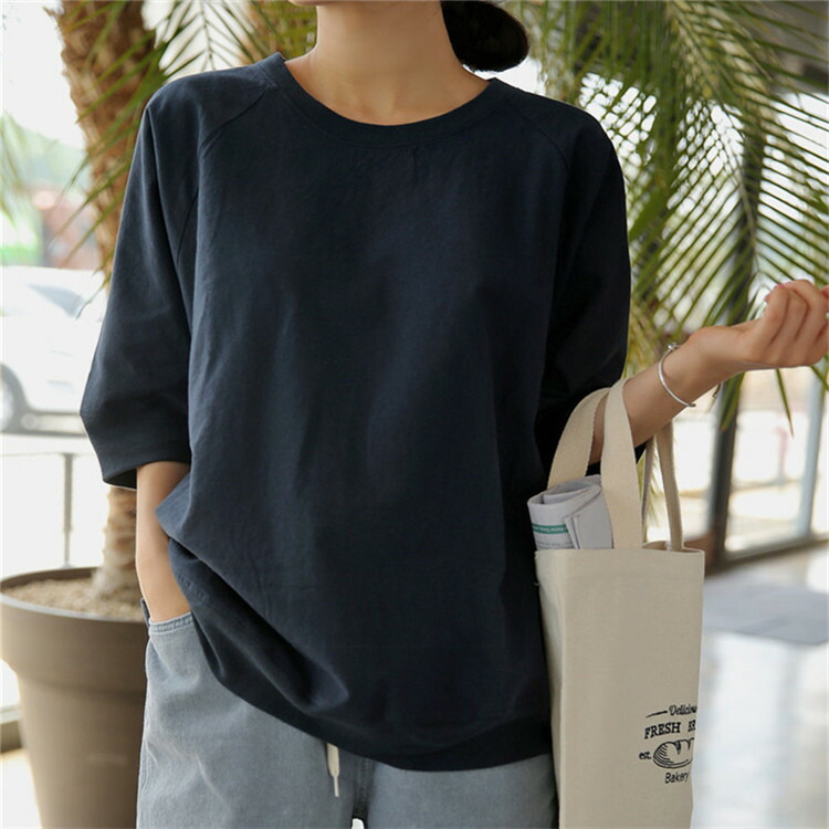 七分袖カットソー レディース ゆったり レディースファッション 特集 M L キナリ ネイビー ブラック