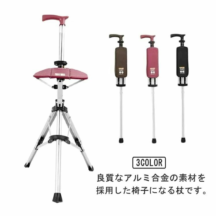 ステッキ 杖 イス 折りたたみ 軽量 ブラック ブラウン レッド
