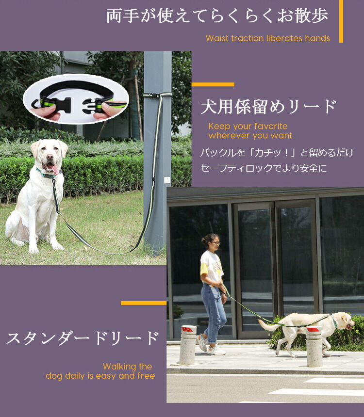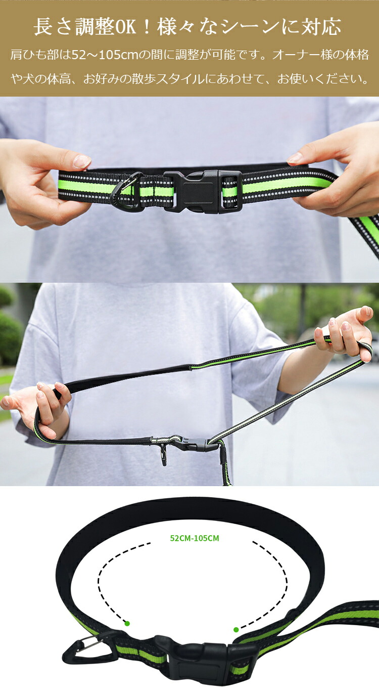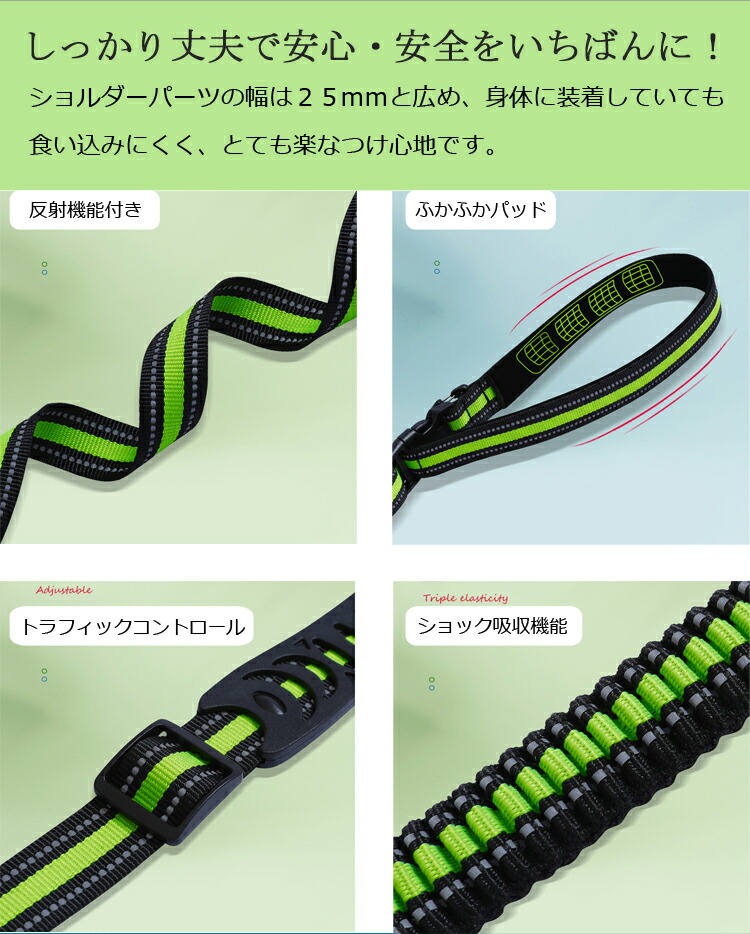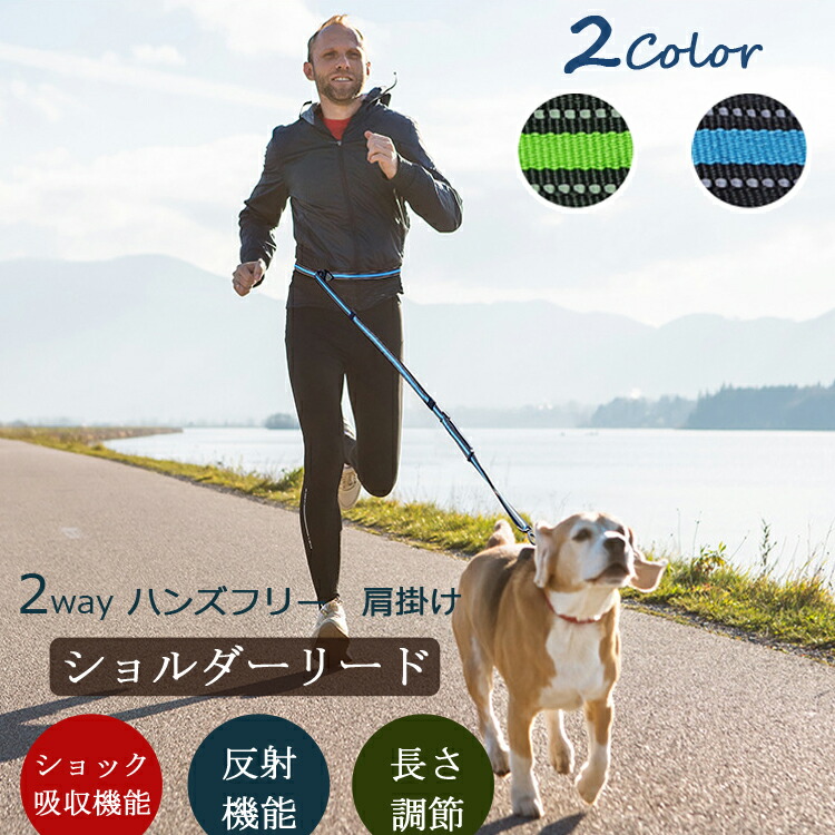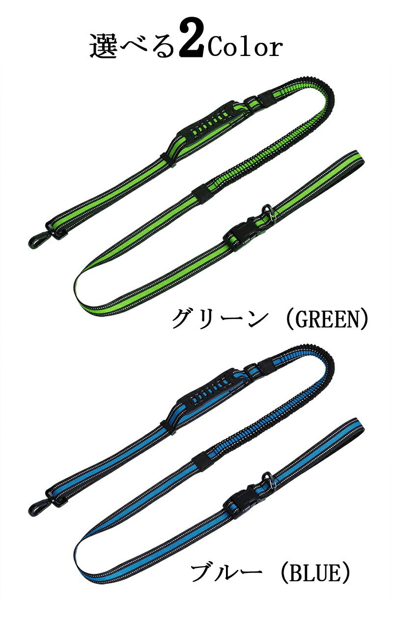 犬用リード 肩掛け 腰ベルト付き ショ ペット ペットグッズ 特集 グリーン ブルー