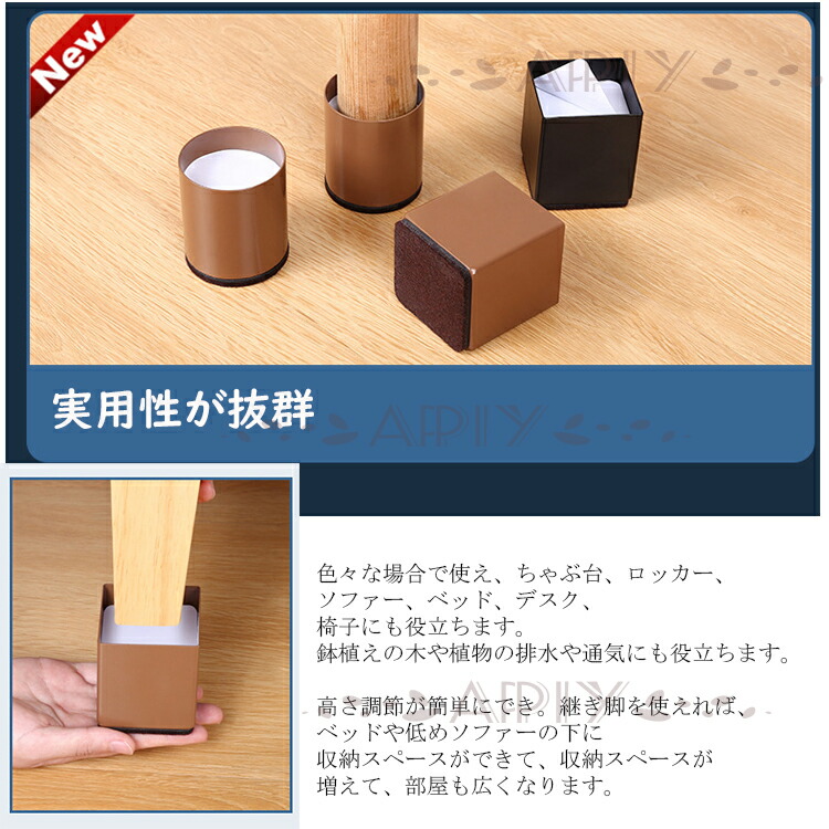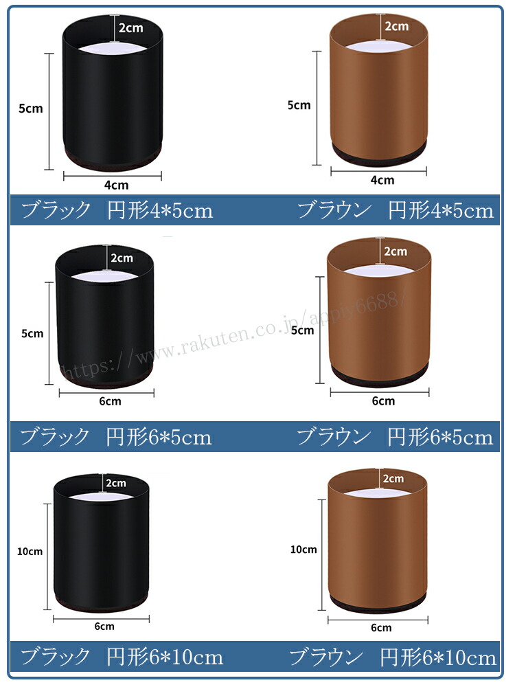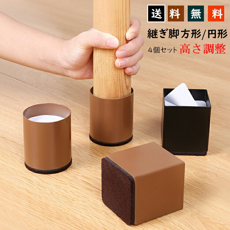 継ぎ足 椅子脚カバー 長方形 継ぎ脚 ブラック円形:4個 ブラック方形:4個 ブラウン円形:4個 ブラウン方形:4個 底部4cm*高さ5cm 底部6cm*高さ5cm
