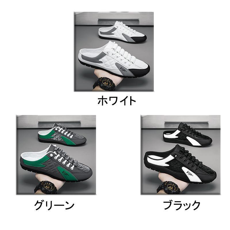 スニーカー かかとなし クロッグ サン 靴 特集 ブラック ホワイト グリーン 39/24.5cm 40/25.0cm 41/25.5cm 42/26.0cm 43/26.5cm 44/27.0cm