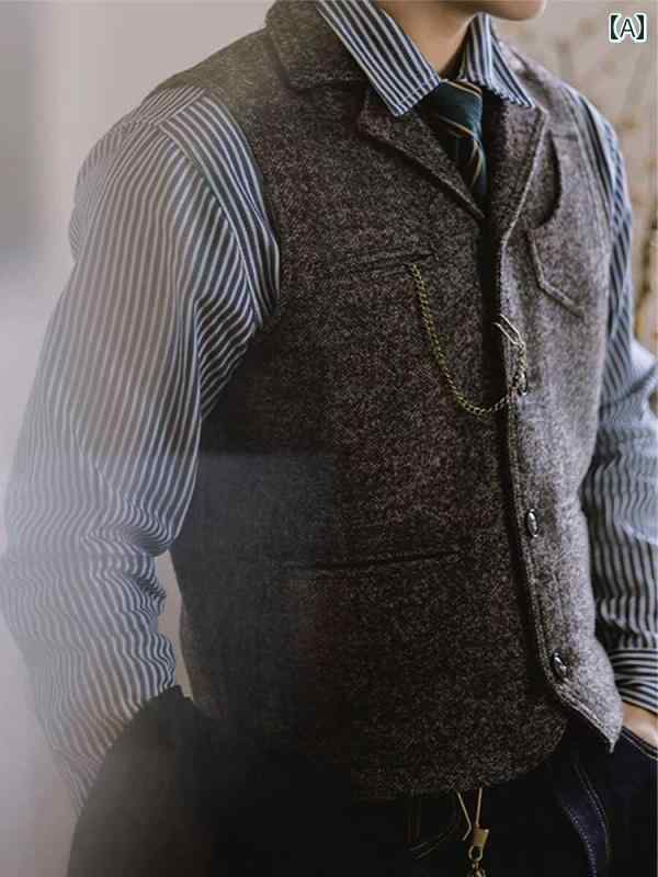 ベスト メンズ ウエスタン ウール 秋冬 スーツ ヘリンボーン ツイード アメリカン レトロ カジュアル ワークウェア グレー ブリティッシュ
