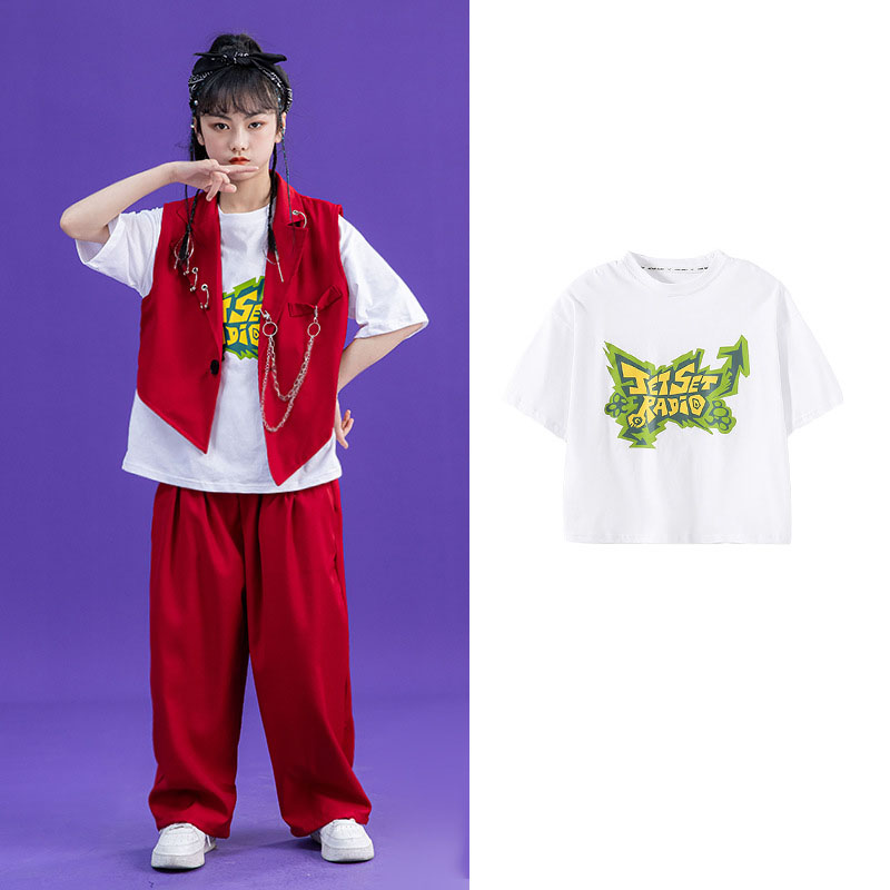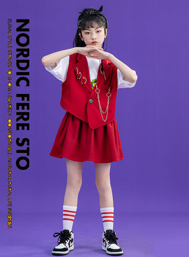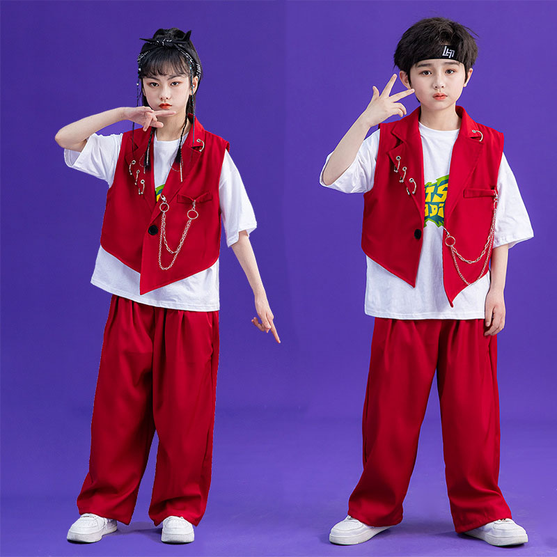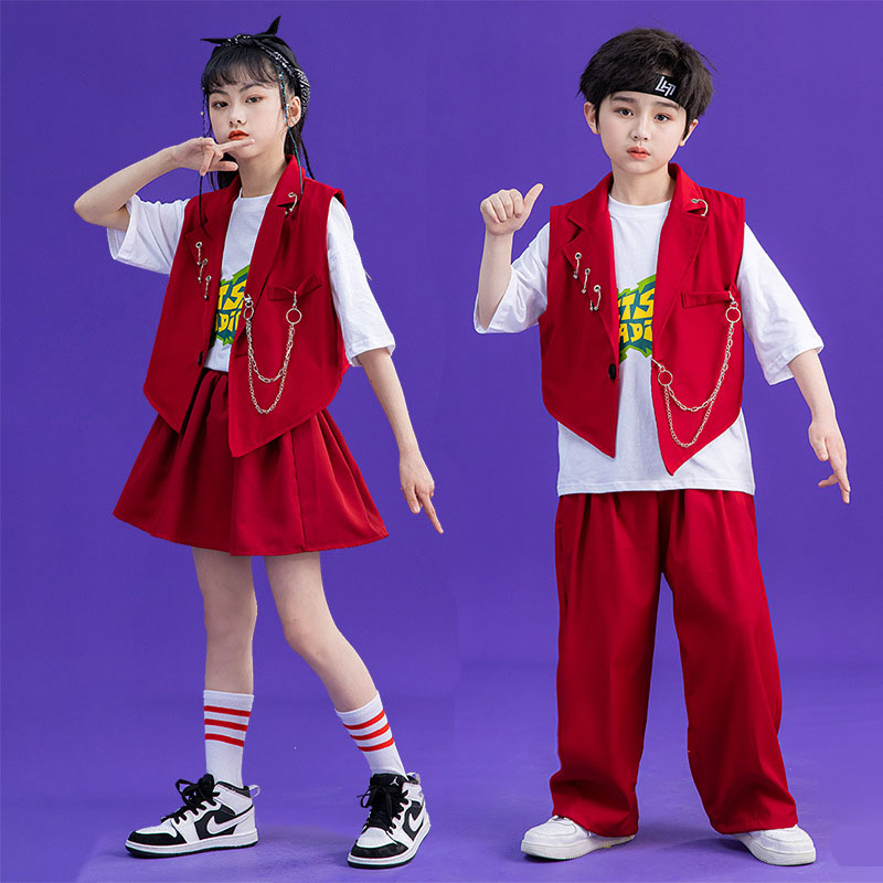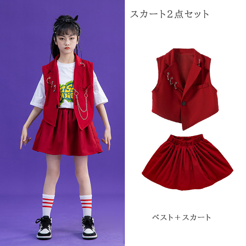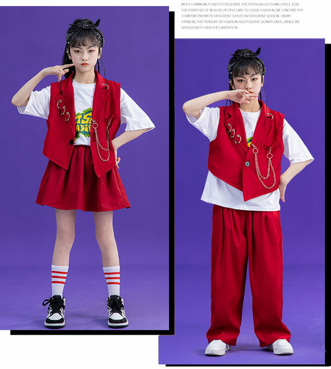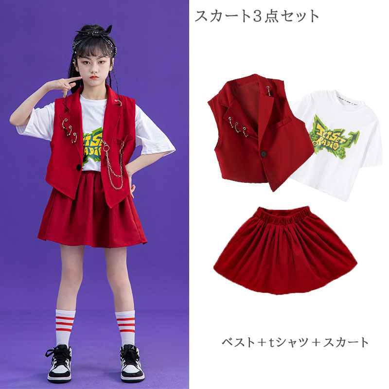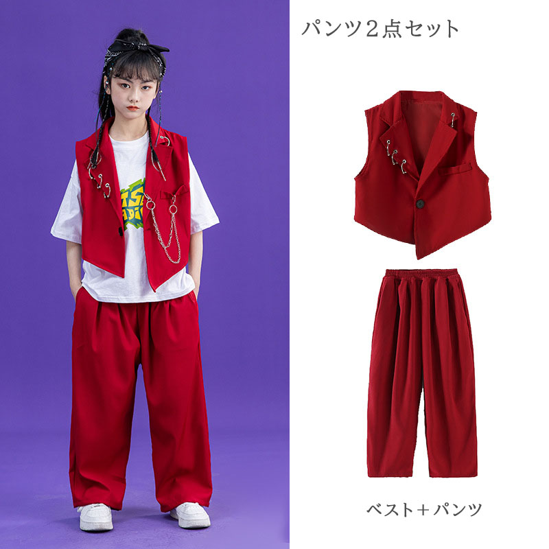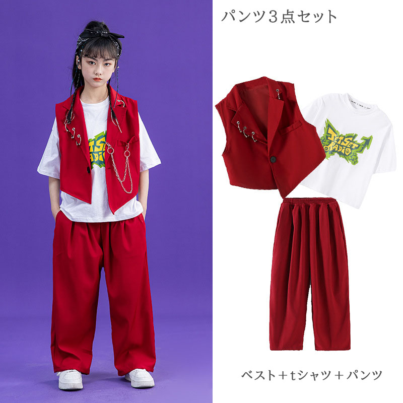 キッズ ダンス衣装 ベスト 赤 セット 体操 ダンス 社交ダンス ウェア 通販 白tシャツ ベスト パンツ パンツ3点セット スカート3点セット パンツ2点セット スカート2点セット 110 120 130 140 150 160 170 180