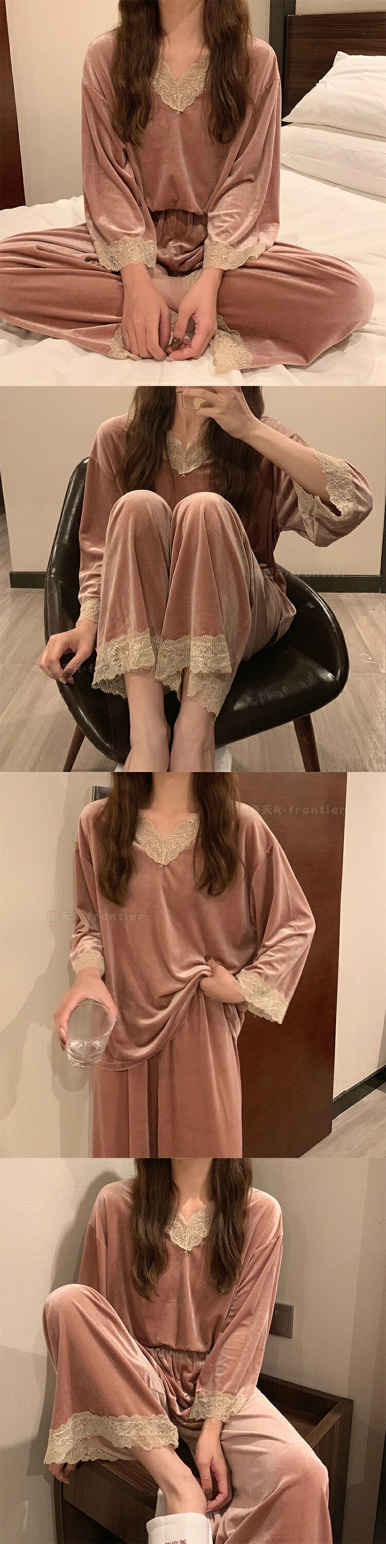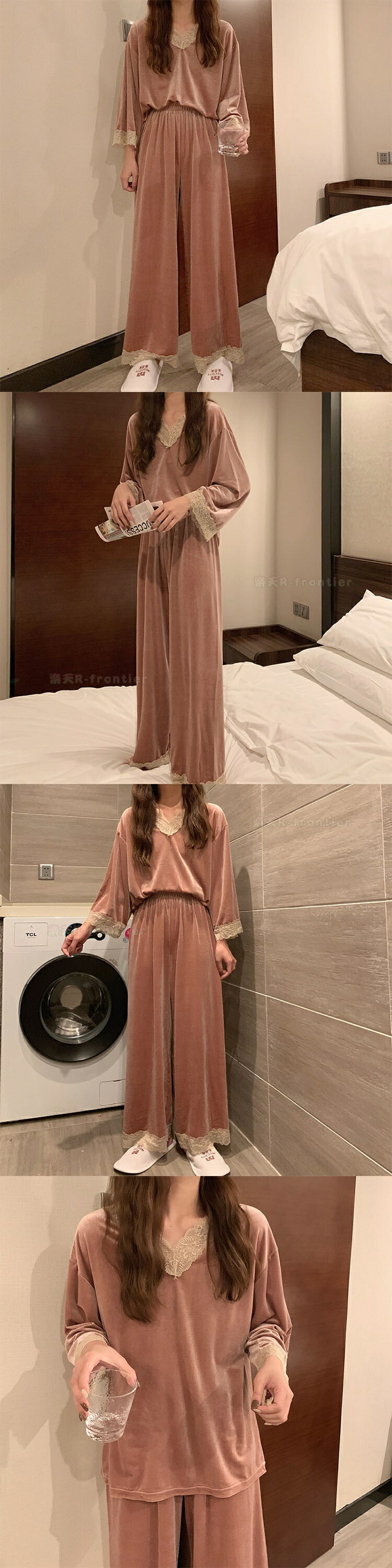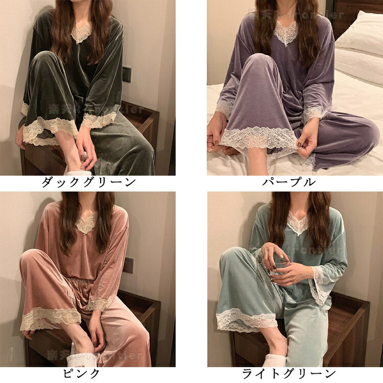 パジャマ レディース 暖かい 冬 レー インナー 下着 ナイトウエア 大人気! ピンク パープル ダークグリーン ライトグリーン M L XL XXL