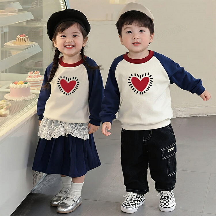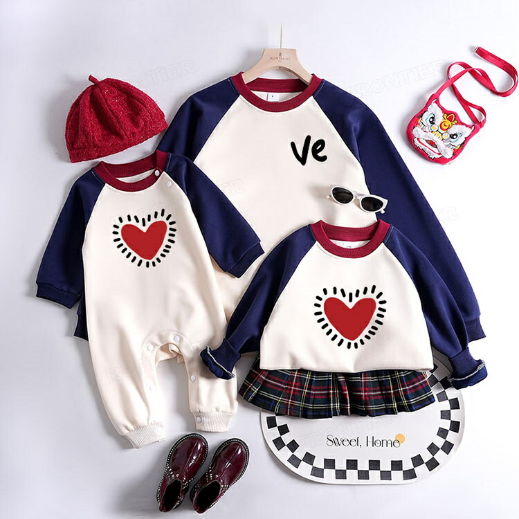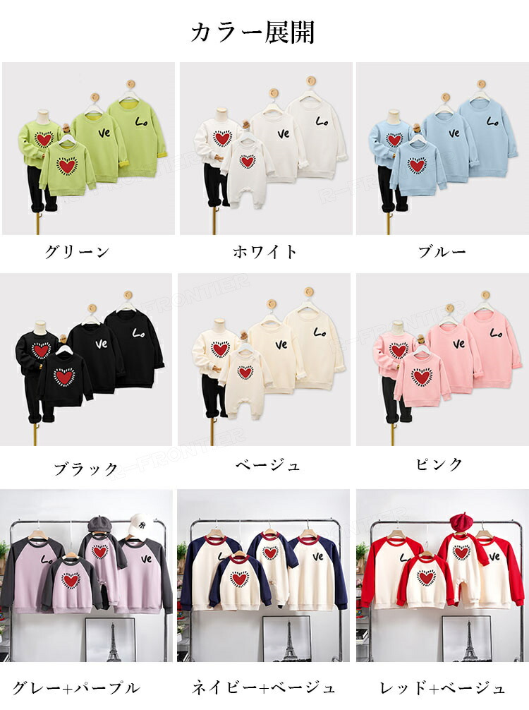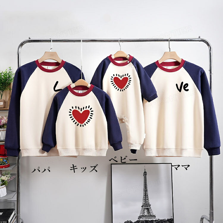 親子ペア トレーナー 赤ちゃん ロンパース リンクコーデ 親子 セット 秋 長袖 ペアルック パーカー tシャツ 家族 お揃い 親子コーデ love ペアtシャツ 男女 お ハート柄