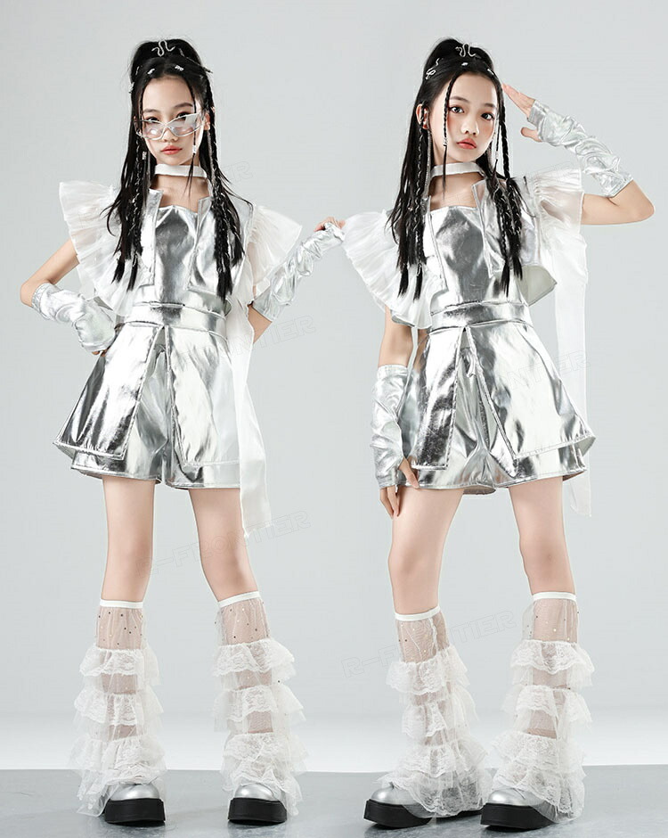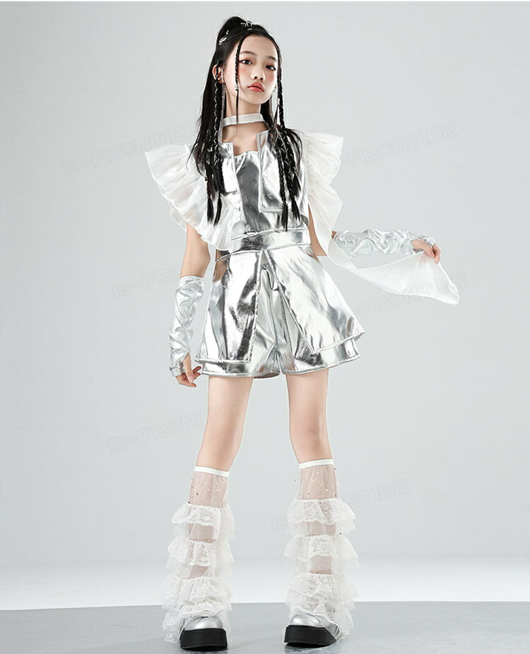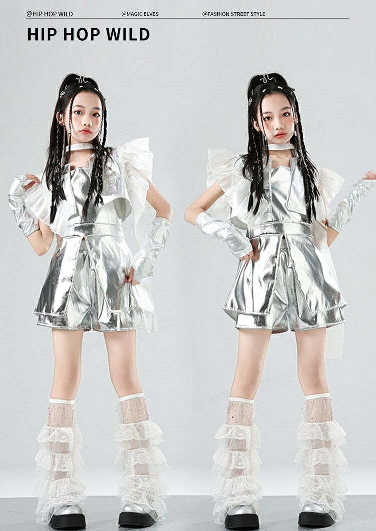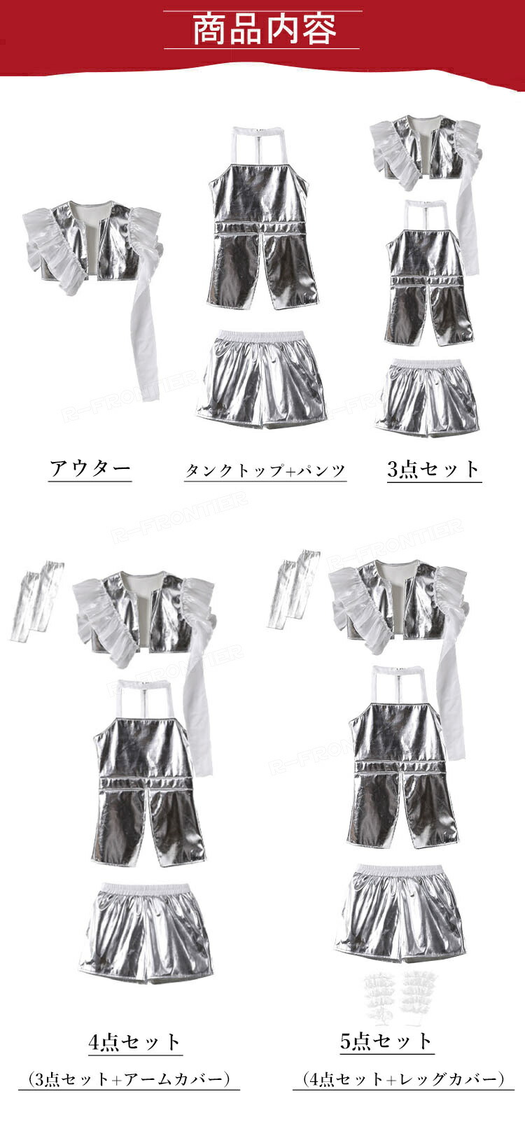k-pop 衣装 シルバー キッズダン 体操 ダンス 社交ダンス ウェア 通販 アウター タンクトップ+パンツ 3点セット 4点セット 5点セット 110 120 130 140 150 160 170 180