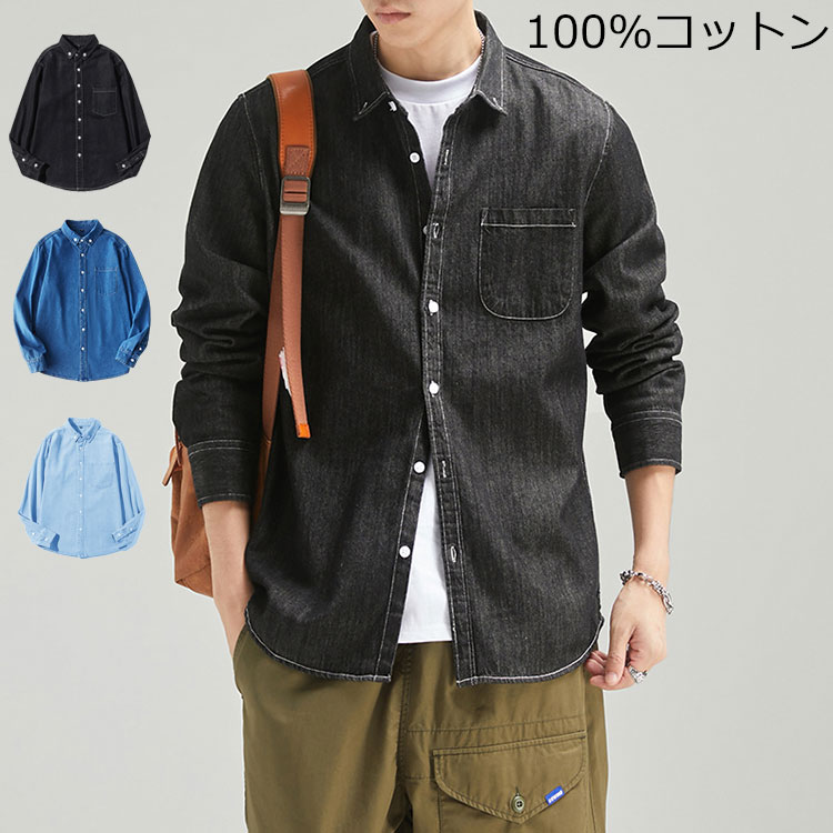メンズ シャツ 長袖 カジュアル デニ トップス カジュアルシャツ 続々入荷中 ダークブルー ライトブルー ブラック S M L XL 2XL 3XL 4XL