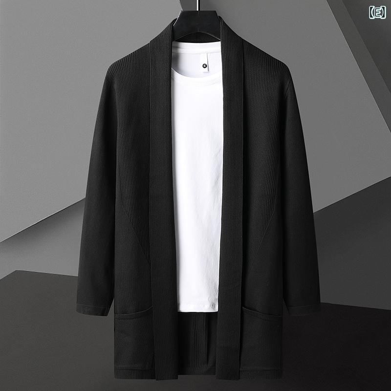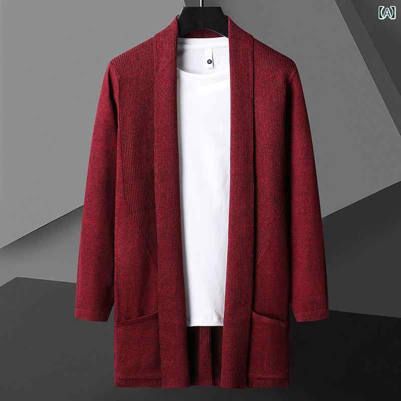 カーディガン メンズ 羽織 ミディアム コート ジャケット 新作 A:レッド B:カーキ C:ネイビーブルー D:グレー E:ブラック M L XL 2XL 3XL 4XL