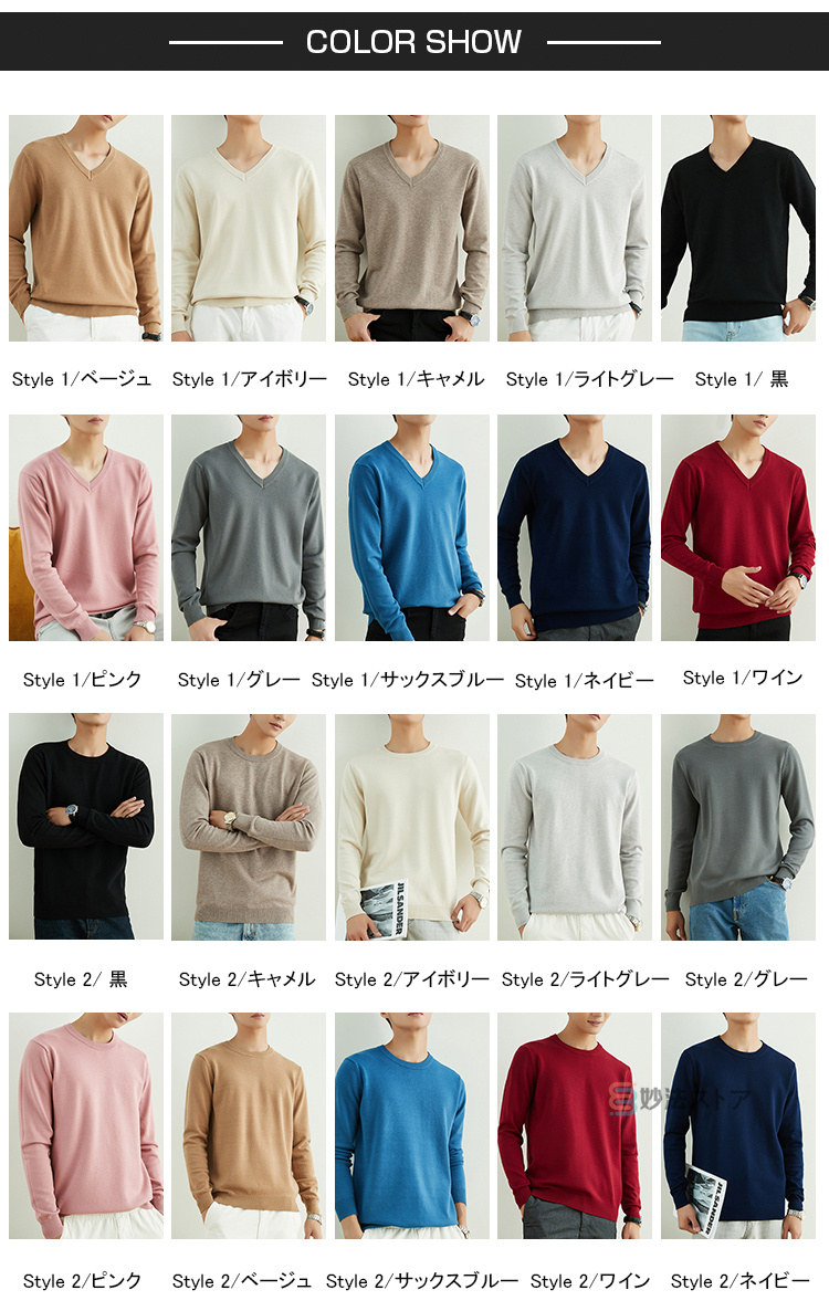 長袖 ニット クルーネック Vネック トップス ニット セーター 豊富 M L XL 2XL 3XL Style1ベージュ Style1アイボリー Style1キャメル Style1ライトグレー Style1黒 Style1ピンク Style1グレー Style1サックスブルー Style1ネイビー Style1ワイン Style2黒 Style2キャメル Style2アイボリー Style2ライトグレー Style2グレー Style2ピンク Style2ベージュ Style2サックスブルー Style2ワイン Style2ネイビー