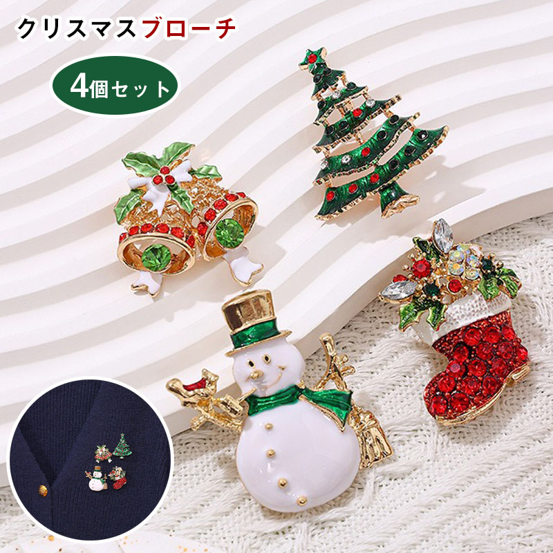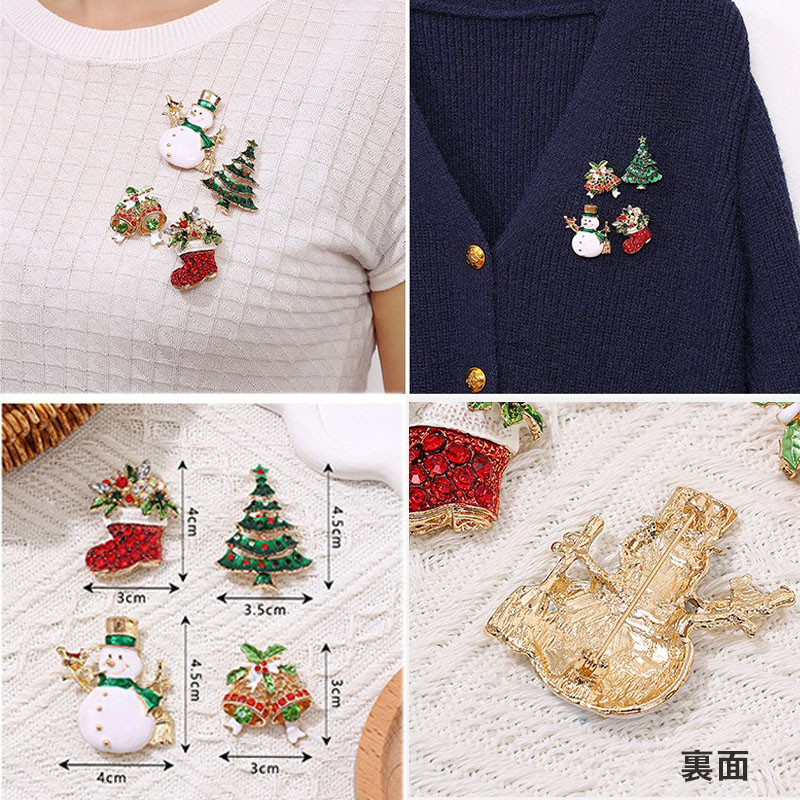 4個セット クリスマスブローチ クリス レディースジュエリー アクセサリー ブローチ 人気 4個セット(一つずつ) ベル(4個セット) 雪だるま(4個セット) ソックス(4個セット) ツリー(4個セット) ご指定