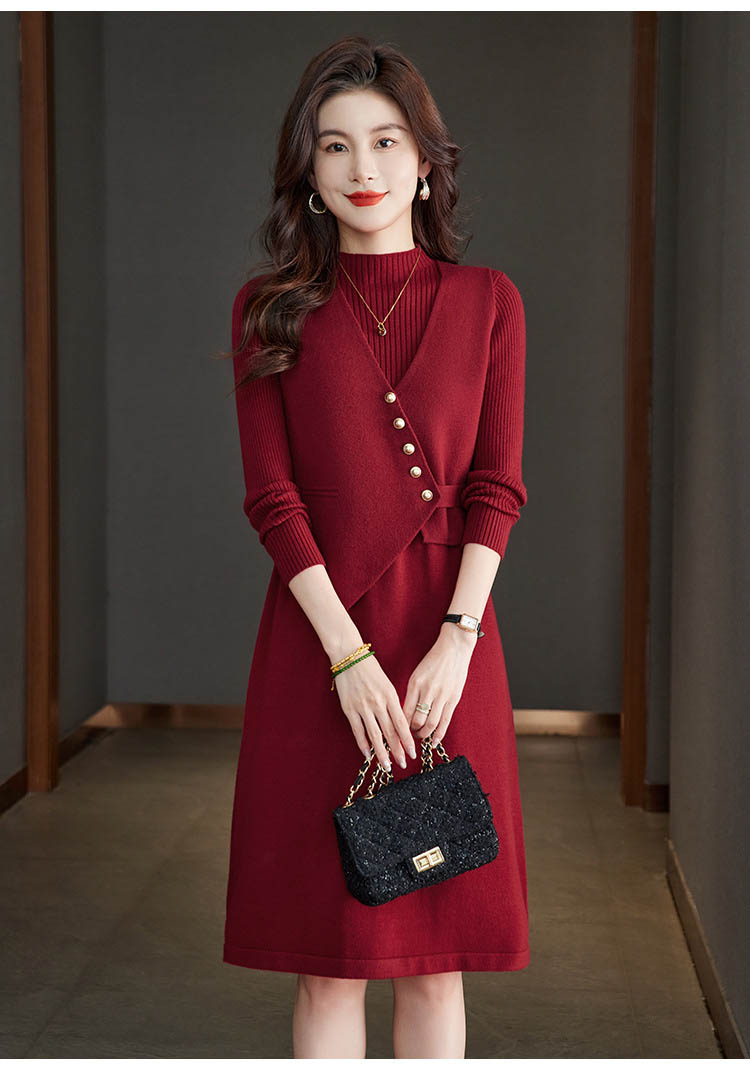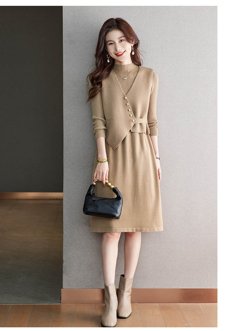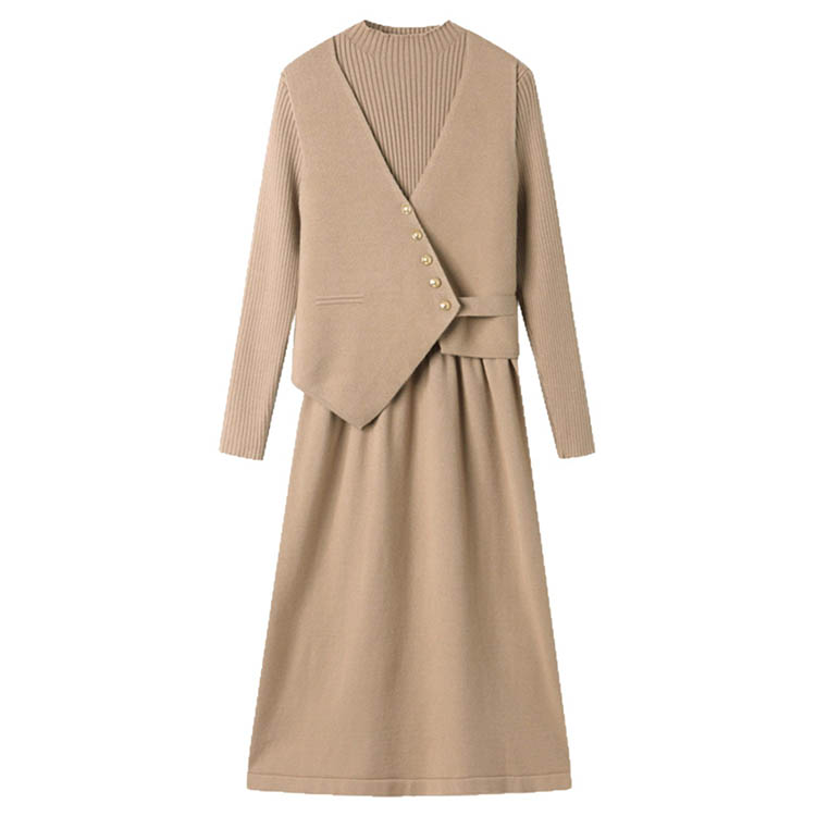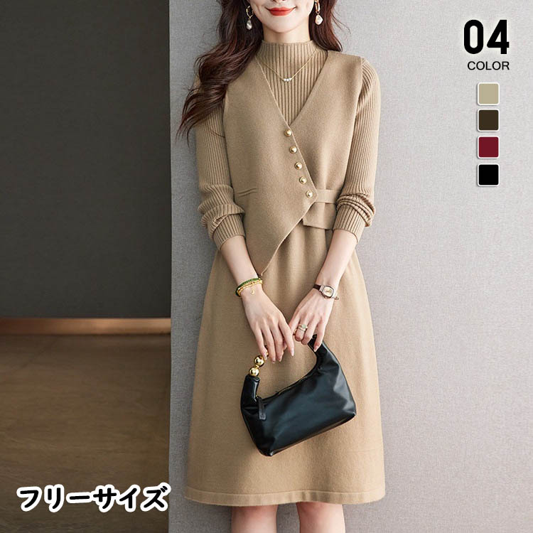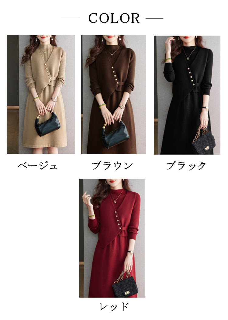 ワンピース Aライン ニット レディー レディースファッション 超目玉商品 ベージュ レッド ブラウン ブラック