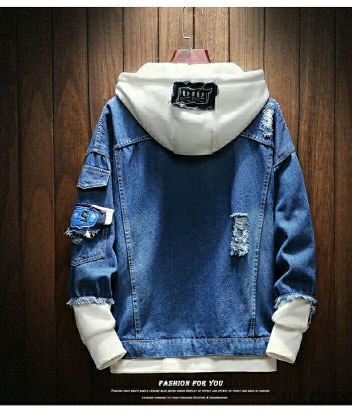 S-3XL デニムジャケットメンズ 春 秋アウターダメージ加工 ウィンテージ感 オーバーサイズ メンズ gジャンデニムパーカーメンズ 重ね風 フード付き アウター ストリート コート 原 ヒップホップ